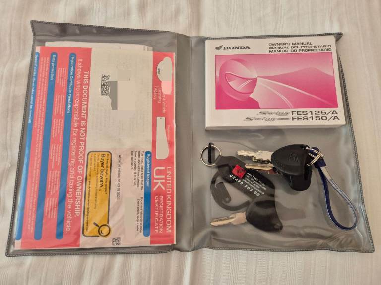 Honda fes 125 S wing, 57 plate. MOT valid until November 2026, new belt and rollers @ 15,000, serviced annually as per the Honda maintenance schedule. The bike is in great condition for its age, it's been well looked after. Two former keepers, owned since 2020 £1100.