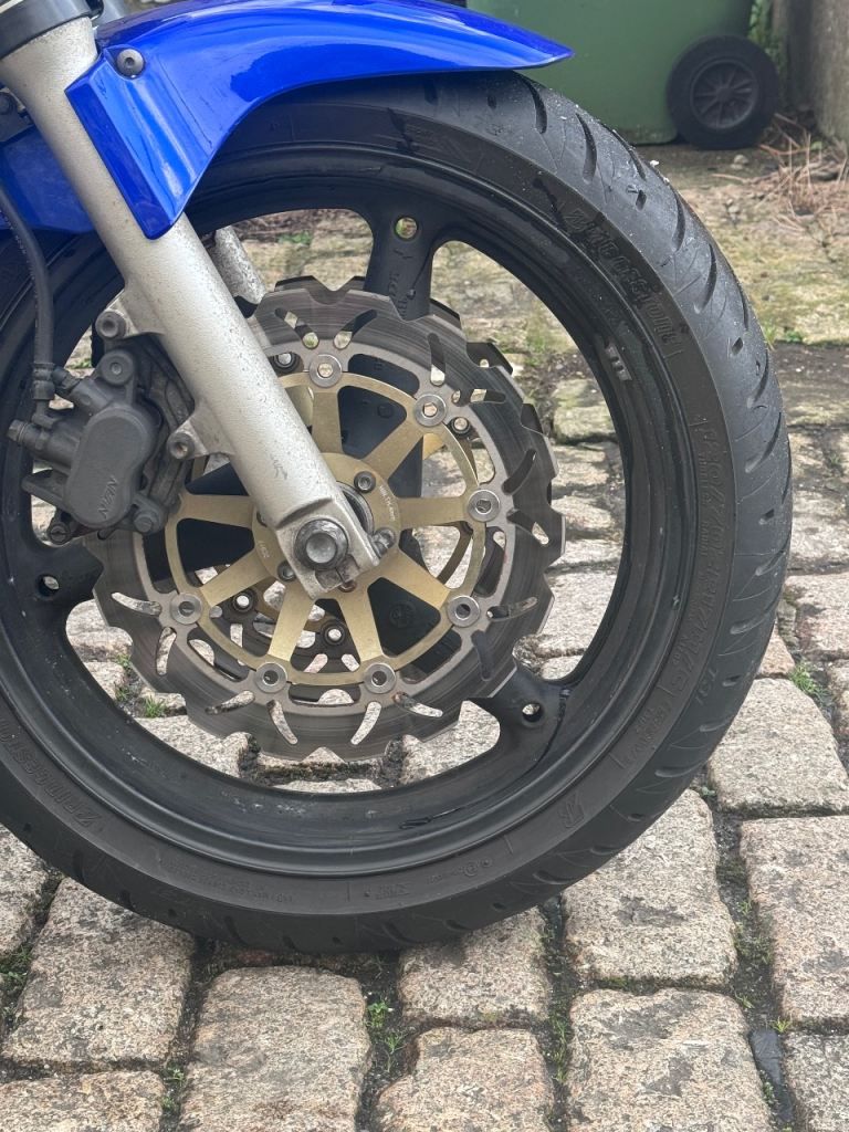 I’ve spent loads on it new tyres front and rear (Bridgestone battle axe ) wavy discs front and rear new did chain and sprockets new rear shock new bars and mirrors belly pan r an g crash bungs new rear plastics clear rear tail light (led) Scott oiler