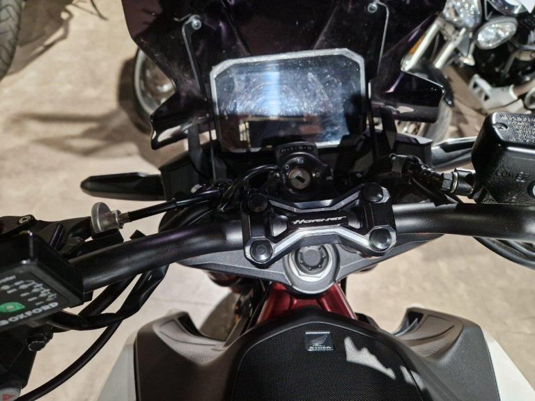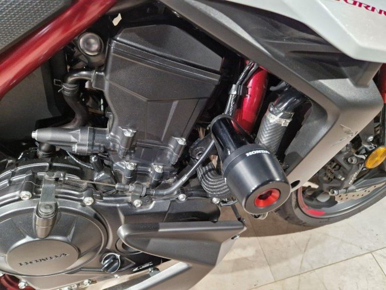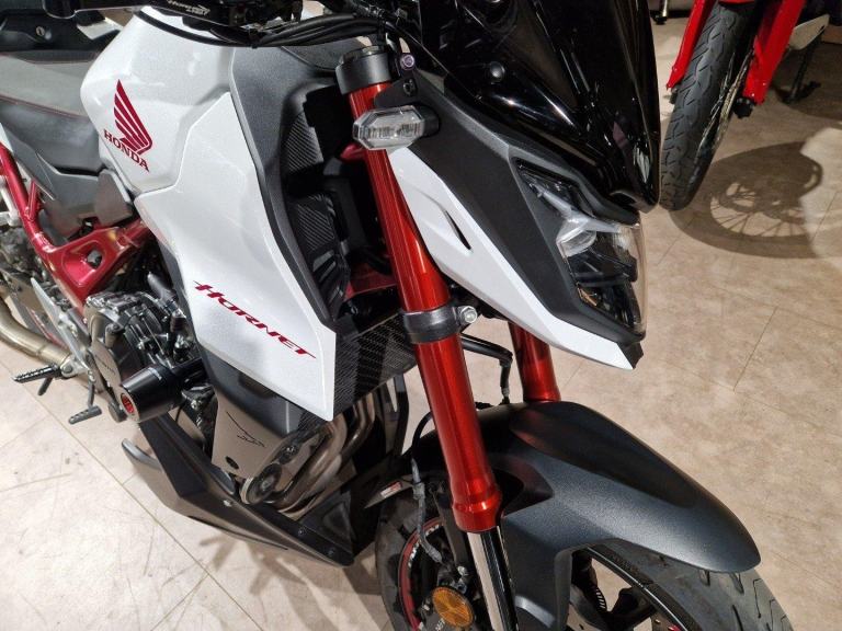 We have a cracking Honda Hornet 750 in white with just one owner from new. Honda Hornet 750 is here to electrify your ride with aggressive styling, razor-sharp performance, and everyday versatility. Whether you're slicing through traffic or chasing the horizon, the Hornet 750 is your ticket to two-wheeled freedom. The bike has been fitted with Oxford Heated Grips, Dark Screen, Honda Engine Bobbins, F1R Fuel Exhaust Can, Powerbronze Rear Hugger, Rear Seat Cowl, Rear Rack, Short Clutch, and Brake Levers. The bike will be fully checked over by our factory-trained mechanics.