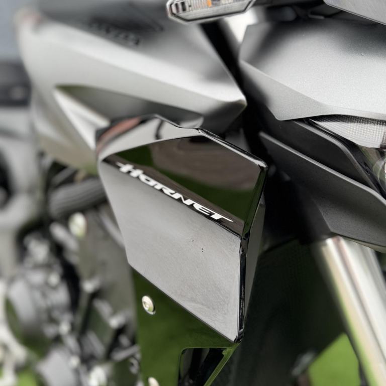Beautiful example of Honda's latest Hornet. This was a pre registered bike and then privately owned. It benefits from the Honda Sports Pack, an R&G Tail tidy, Pyramid rear hugger and a Evotech radiator guard. The bike has had it's first service completed ~ 09/07/2025 so she is ready to go. The bike will come with two keys, all books and a HPI clear certificate.
