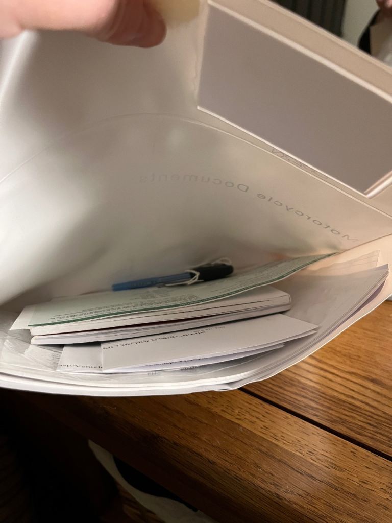 All documents present and spare key. 2 keys. Log book in my name.