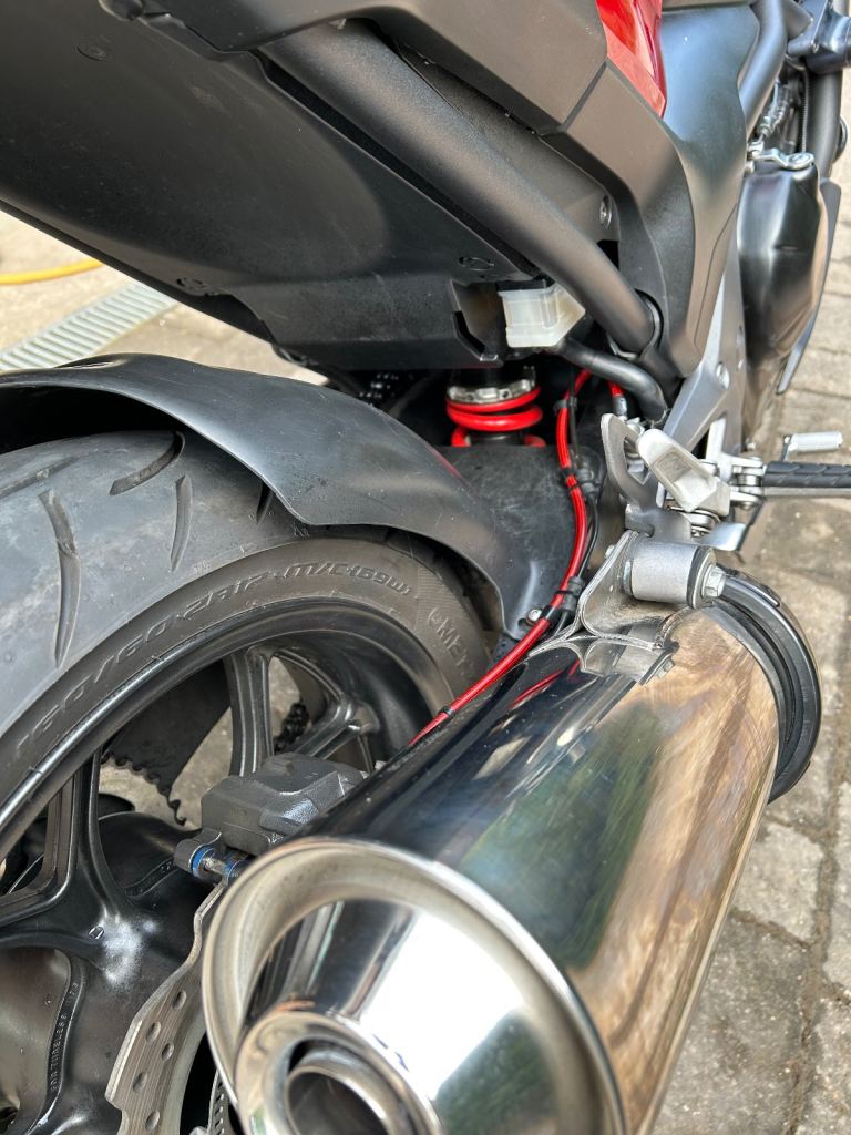 Bobbins on the rear for bike stand, heated grips. Original exhaust system and Cat.
