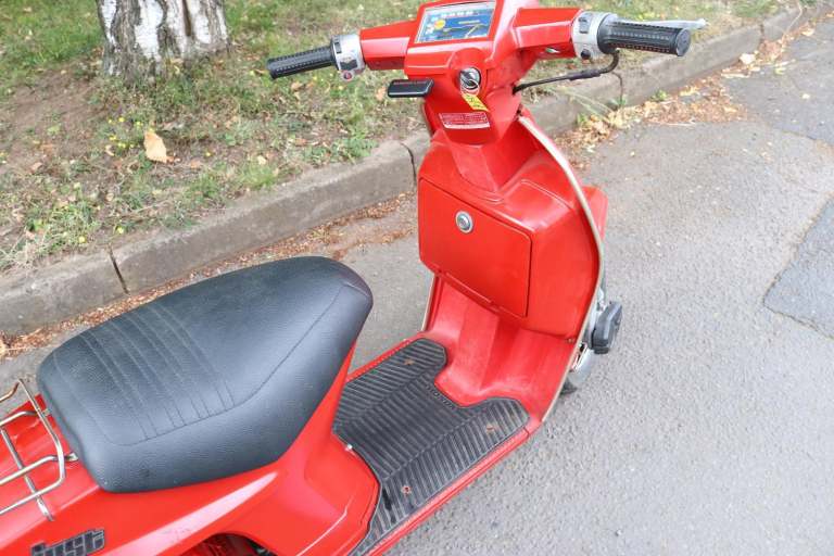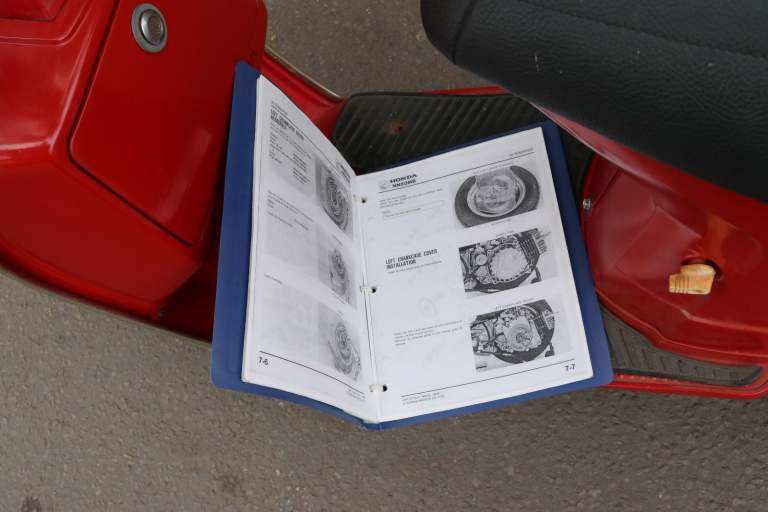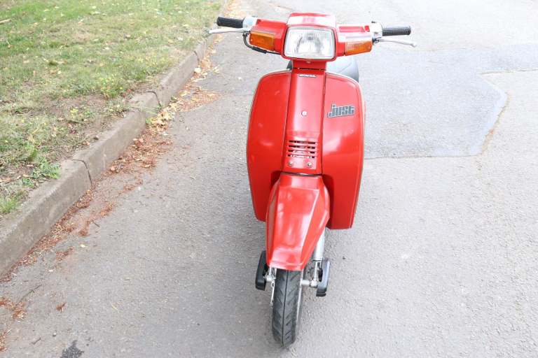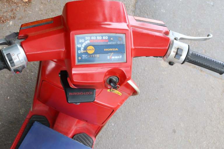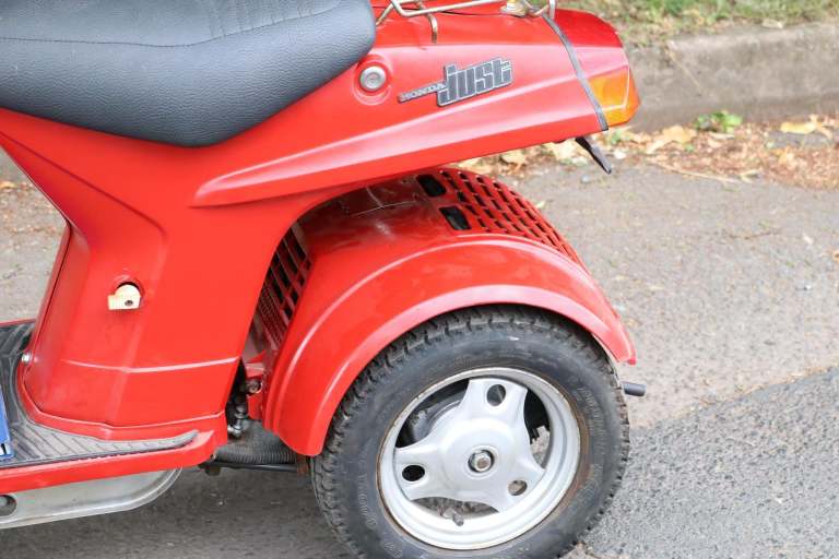Fresh in from Canada, a 1984 Honda Giro / Just in Sparkling Red. Mileage of 2645 (KPH speedo) is believed genuine. This is a one year only bike. Electric Start, and two speed automatic, with articulated body. Communes with a genuine workshop manual. A good battery is fitted. It starts and runs, but it wants the carb cleaning. Getting hard to find now, (we've never had one for sale in the last 20 years!) so be quick on this one, it won't be here long at this price!