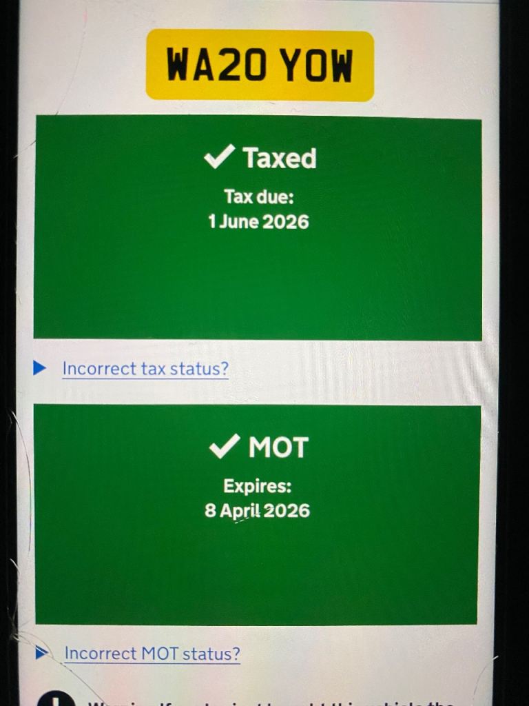 This vehicle has not been reported stolen, scrapped, exported or flagged as unroadworthy.