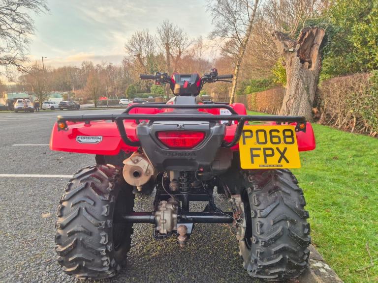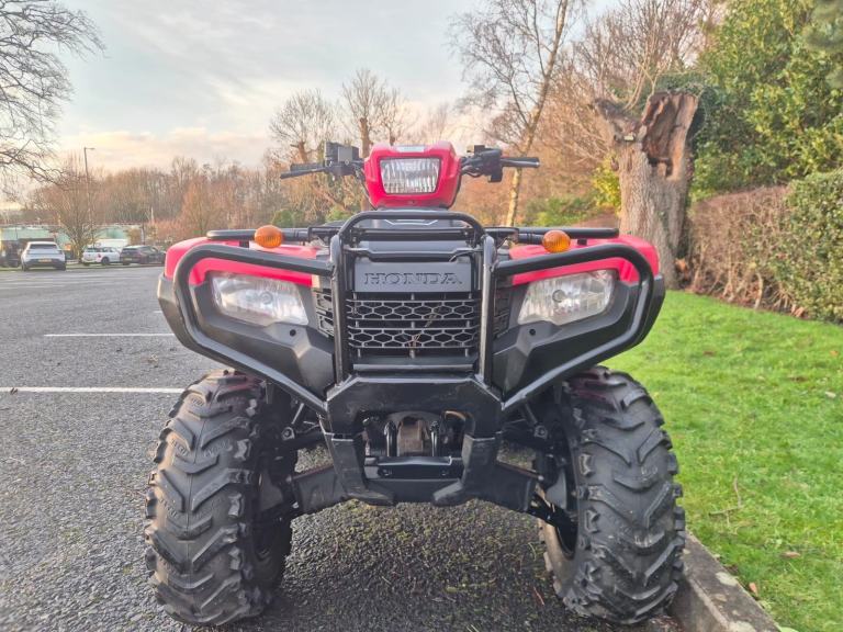 Honda TRX500FE2 Foreman, 2018 model. Comes with great features including diff lock, selectable 2/4WD, power steering and electric shift making it a joy to ride. Comes fully serviced and fitted with a road lighting kit, as well as a Logic AE500 accessory socket.