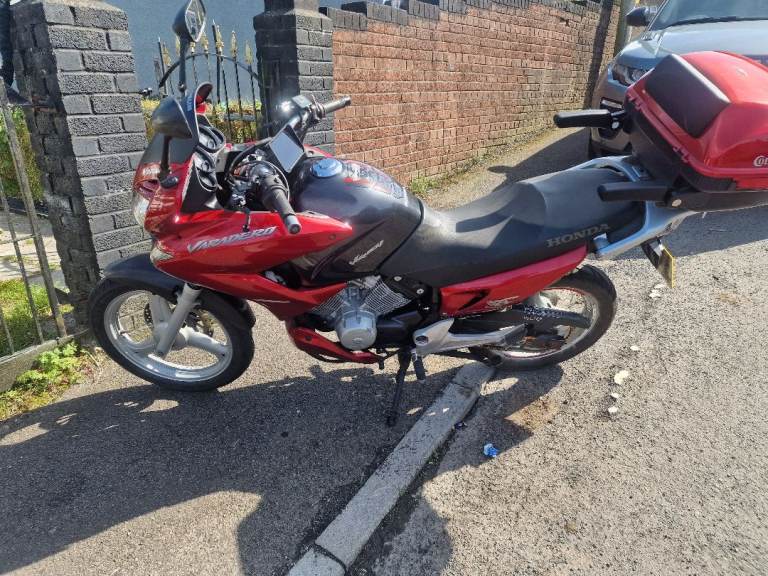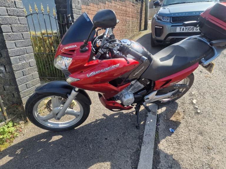 Honda varadero 125 new m.o.t millaege is on 40k does have some scratches nothing major just had 2 new tyres new chain and sprockets upgraded head light bulbs there is 3 advisorys on m.o.t chain is still wearing in as just put on just before m.o.t somthing about rear disc but it is new one on there and steering abit stiff not sure what hes on about there as its ok well to me it is welcome to come and see for yourselves runs and rides as it should and being the 2012 its the fuel injection engine not many of these varaderos about anymore as no longer made looks a nice bike and looks bigger than a 125 back up for sale as had an absolute tool of a man wanted it say no more he wanted a bike wich was basically brand new then sulking about the advisorys at the end of the day its a 2012 bike not a brand new one so bare that in mind thanks