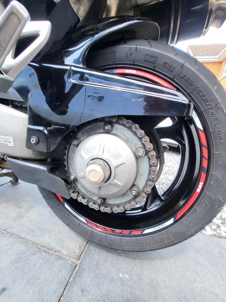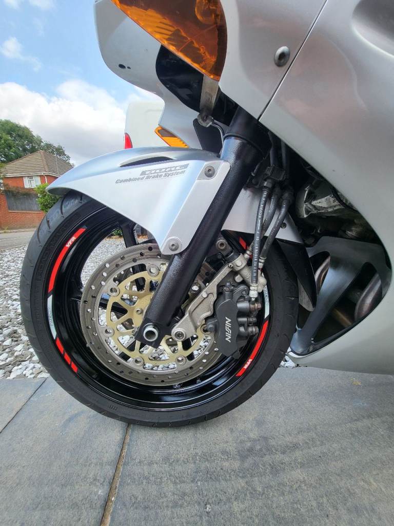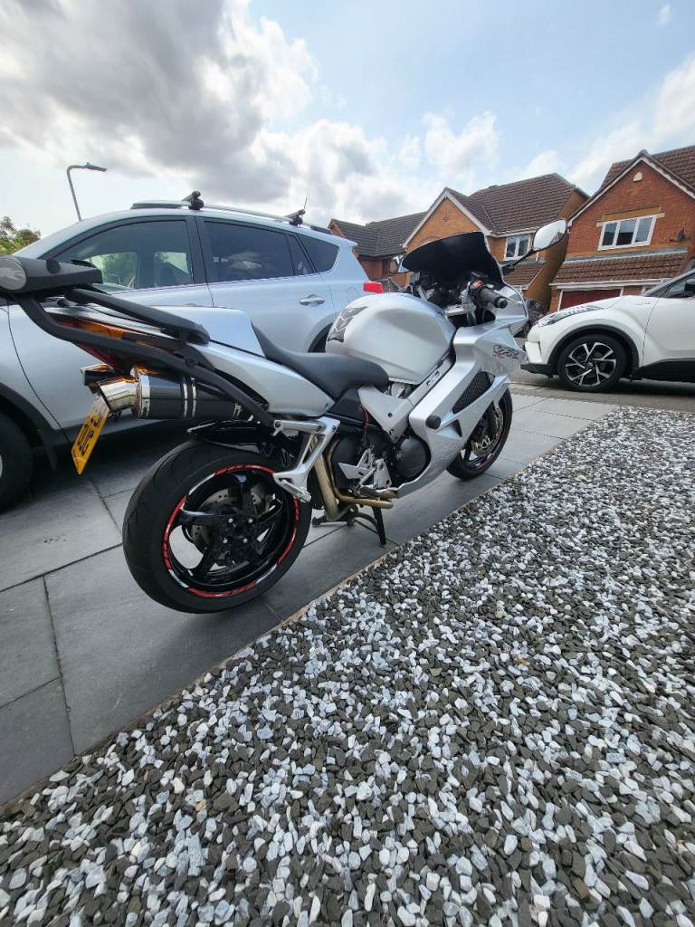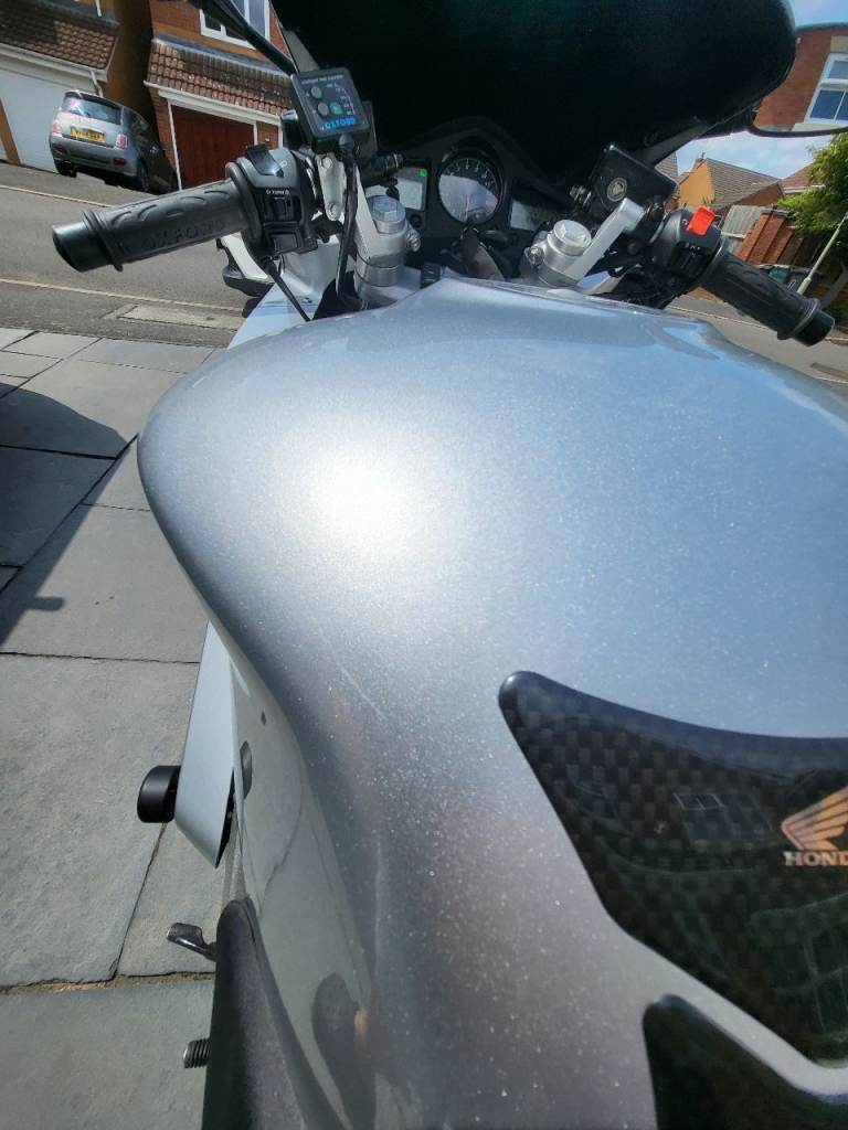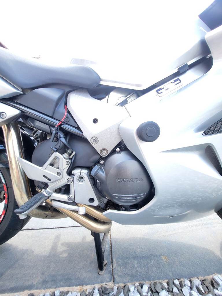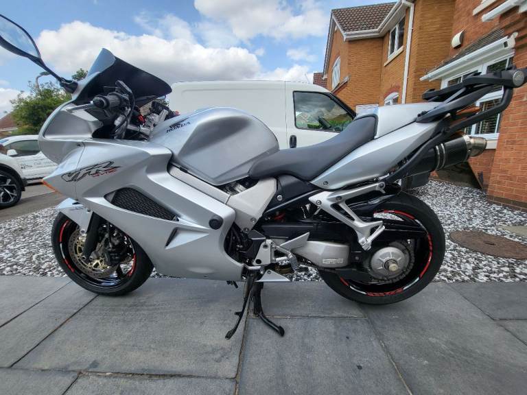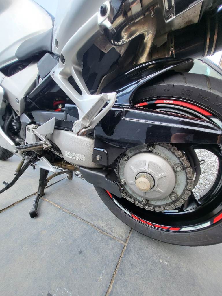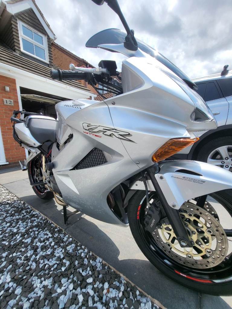 Here's my VFR800 vtec, what a great bike ! this has 6 months MOT, had a few owners before me, all original fairings etc along with the standard exhaust included, but currently has a full delkevic exhaust and a power commander 6 fitted and set up to suit fuelling, it came with it when I bought it, this has a genuine 22k miles from new, its on a 2001 plate, wants for nothing has heated grips, gear indicator, seat pod, backplate for top box, tracker if you want to sign up with scorpion for £134 a year ? I used to commute and put 3k on it, tyres, chain etc all good, this is a lot of bike for the money and you'll struggle to find a more honest one, it must have had an electrical fault so was passed on and not used much, I only found it when I was commuting as it would only ocurr when warm, it was 2 oversized electrical connectors on one the coil pack connectors, I've repaired it and loved the bike, its a reluctant sale, wheels and discs are near on original mint condition which reflects the mileage its done, it fires on the button every time and I've only ever replaced the battery last year through wear and tear.