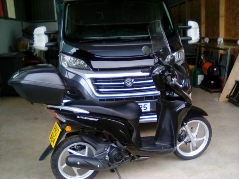 As new has been garaged from new. M.o.t.to September 2026 black proper Honda back box,plus wind shield ,twist @go, also have hydraulic easy lifter for scooter/motorbike ..max 200kilo's price to be agreed