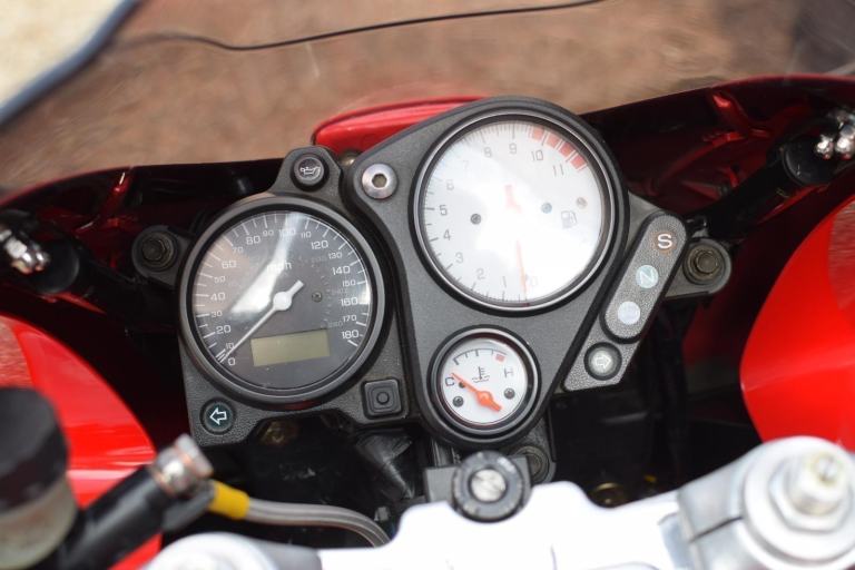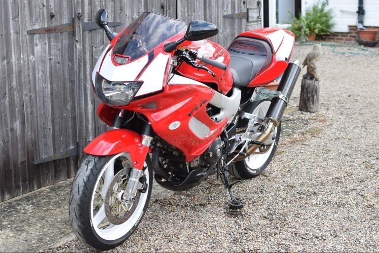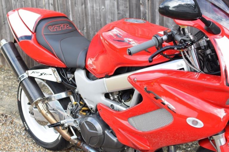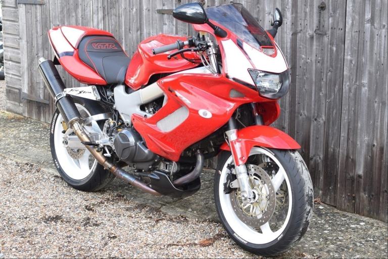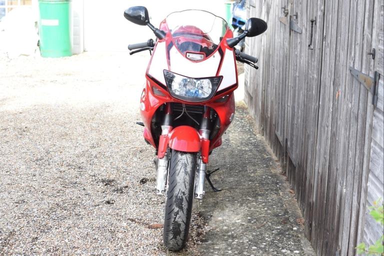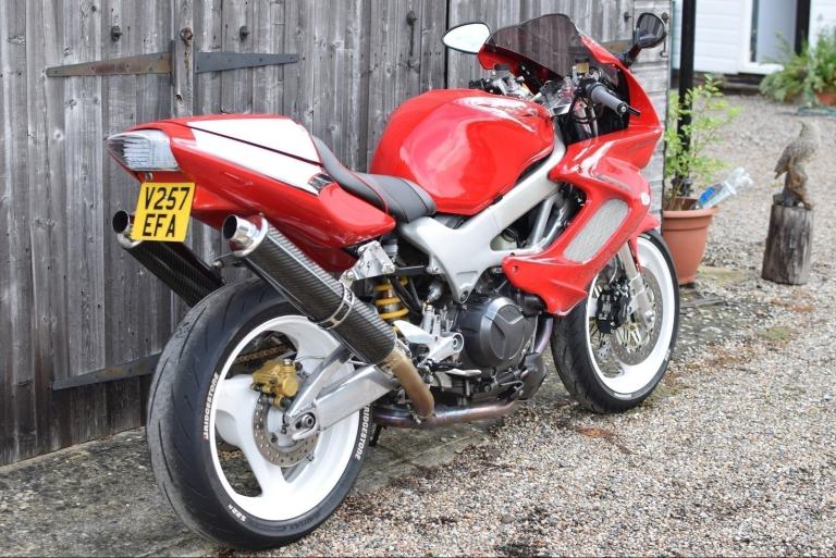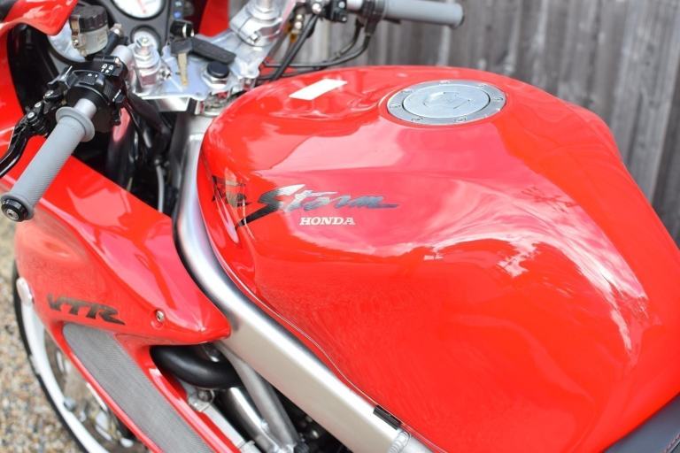 Honda VTR1000 F-X Firestorm in Italian Red with White Wheels and Decals. Registered 1999 on a ‘V’ prefix