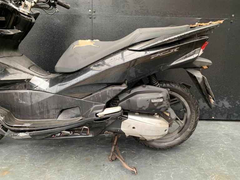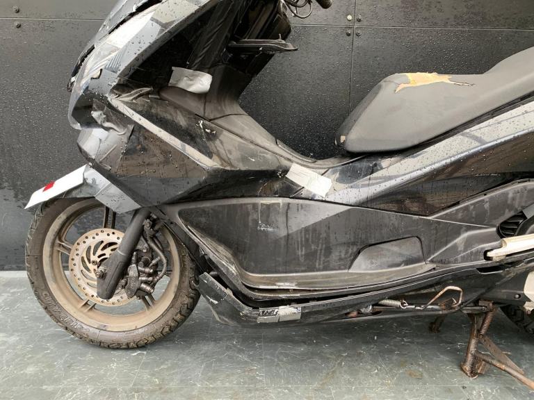 Here we have for sale a Honda PCX 125 as a project scooter in overall not bad condition. We have not had this bike running, the ignition needs attention. the starter relay is just clicking when the starter button is pressed. As shown, it is tatty and has damage in areas, the rear tyre is in need of replacing. We have the V5 for this bike. The MOT expired 09.02.2025. This bike was listed Cat N in 2019.