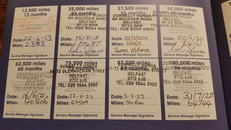**FULL DONNELLY HONDA SERVICE HISTORY WITH 8 STAMPS**