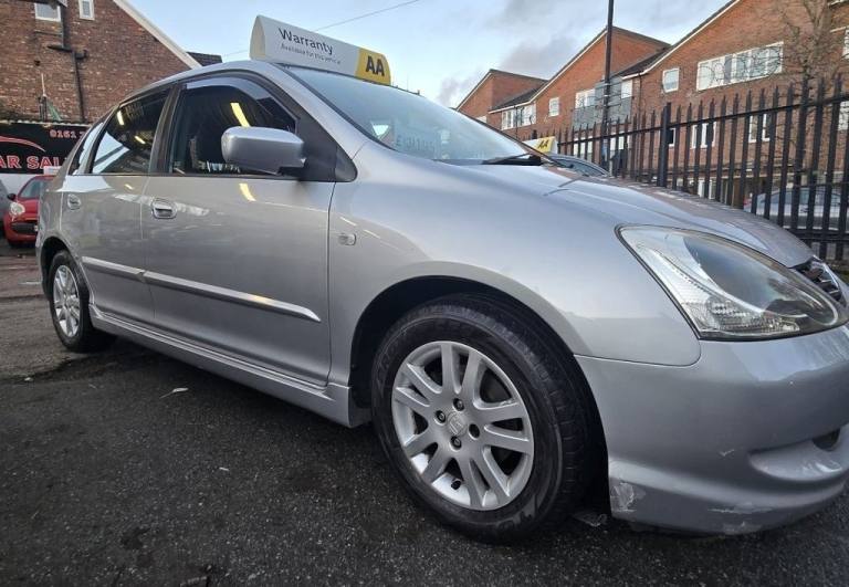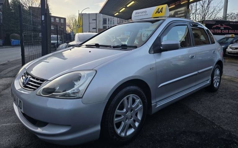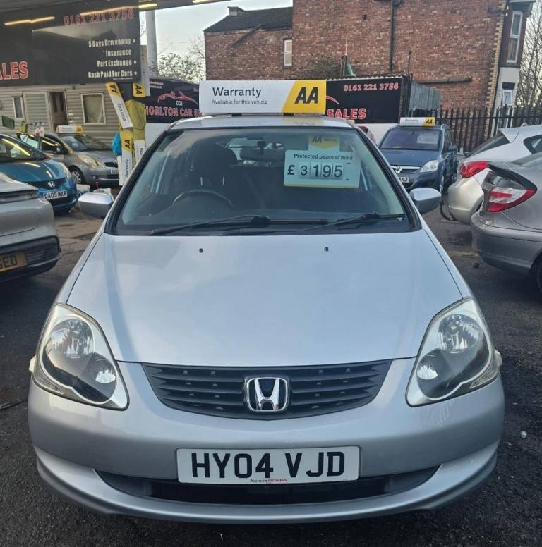 Here we have for sale a lovely 2004 honda civic automatic in a lovely metallic silver. It is the small 1.6L petrol engine which is great for new or first drivers as they are cheap to insure and very economical to run. It also has the fully automatic transmission which is renowned for its reliability and strength. It has covered very low mileage for its age of just over 65000 miles backed by a comprehensive service history consisting of 12 service stamps. It will come with a full 12month mot with no advisories and a full service from ourselves upon purchase. Very clean car both cosmetically and mechanically. First to see will buy. Here at chorlton car sales we strive to deliver 100% customer satisfaction to all our customers therefore we offer a full 3month aa warranty for complete piece of mind. Extended warranty is available by the reputable aa warranties for up to 12months as we are approved dealers for them. They are the uks number one warranty company. We are now proudly part of the aa dealer promise as aa approved dealers which means you can buy through us with complete confidence. Delivery available. 5day driveaway insurance available.12month aa breakdown cover with all vehicles. All major cards accepted. All forms of payment accepted. Open 7days a week. AA APPROVED DEALERS, CONTACTLESS DELIVERY AVAILABLE, 12MONTH BREAKDOWN COVER WITH ALL VEHICLES, 3MONTH AA WARRANTY WITH ALL VEHICLES, ALL FORMS OF PAYMENT ACCEPTED, ALL MAJOR CARDS ACCEPTED, OPEN 7DAYS A WEEK. .Metallic Paint, Adjustable Steering Column/Wheel, Air Bag Driver, Air Bag Passenger, Air Bag Side, Air-Conditioning, Alarm, Alloy Wheels (15in), Anti-Lock Brakes, Body Coloured Bumpers, Central Door Locking, Centre Rear Seat Belt, Deadlocks, Electric Windows (Front/Rear), Head Restraints, Immobiliser, In Car Entertainment (Radio/Cassette), Mirrors External, Power Socket, Power-Assisted Steering, Seat Height Adjustment, Spare Wheel (Steel), Speakers, Sunroof Electric, Upholstery Cloth