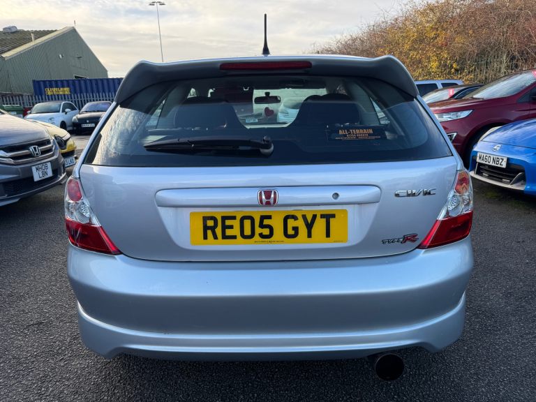 2005 Honda Civic 2.0 i-VTEC Type-R 3dr in Silver. Rare and Desirable EP3 Civic Type-R highly praised for its raw and thrilling driving experience that ultimately its supposed successor (the FN2 Type-R) disappointed on. This EP3 is in good condition throughout and drives brilliantly with VTEC performing faultlessly. With 13 Services stamps, this example has been well cared for and has 2 keys. Rarer facelift example which comes noticeably with an updated front bumper, indicators on wing mirrors, updated rear lights, projector front lights and Red and black Type R front seats to name a few. There is also some mechanical enhancements including a lighter flywheel and revised suspension improving the 0-60 time from 6.6 seconds to 6.4 seconds. Everything is in good working order including cold air conditioning. 12 Months MOT, Full Service and 6 Months Warranty with the sale. A nice example of the appreciating Civic EP3 Type-R.