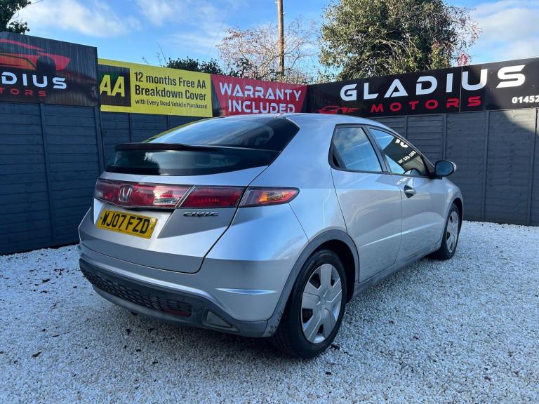 VIEWING BY APPOINTMENT ONLY FULLY PREPPED AND READY TO DRIVE AWAY TODAY JANUARY SALE NOW ON! WAS 3,695 NOW 2,895!This 2007 Honda Civic 1.4 i-DSI SE 5dr finished in silver is a fantastic example of a car built to last. With just one owner from new and a sensible 76,000 miles, its clearly been looked after properly throughout its life.It benefits from an excellent maintenance record with 10 service stamps, the most recent service carried out in August 2025. The MOT runs through to September 2026 and is completely clean with no advisories, giving you real peace of mind.Out on the road, it drives exactly as a well-maintained Civic should smooth, predictable and reassuring. The 1.4 i-DSI engine is famously bullet-proof, known for its reliability, low running costs and excellent fuel economy, making it an ideal choice for commuting, daily use or anyone wanting dependable motoring without surprises.Inside, its clean, tidy and comfortable, with everything working as it should. The Civics solid build quality is immediately noticeable, and it feels composed and easy to drive whether in town or on longer journeys.Please note, this is a used car not a new one. As a 17-year-old vehicle, you should expect some light age-related marks and cosmetic wear, nothing major or unexpected. We describe all our cars in good faith, so if theres anything important youd like to confirm, just ask and well be happy to help.Supplied with a 3-month nationwide warranty and 12-month AA breakdown cover, and offered by a 5-star rated AA Approved Dealer, you can buy with confidence.Call 01452 452786 to arrange a viewing serious buyers only, please.