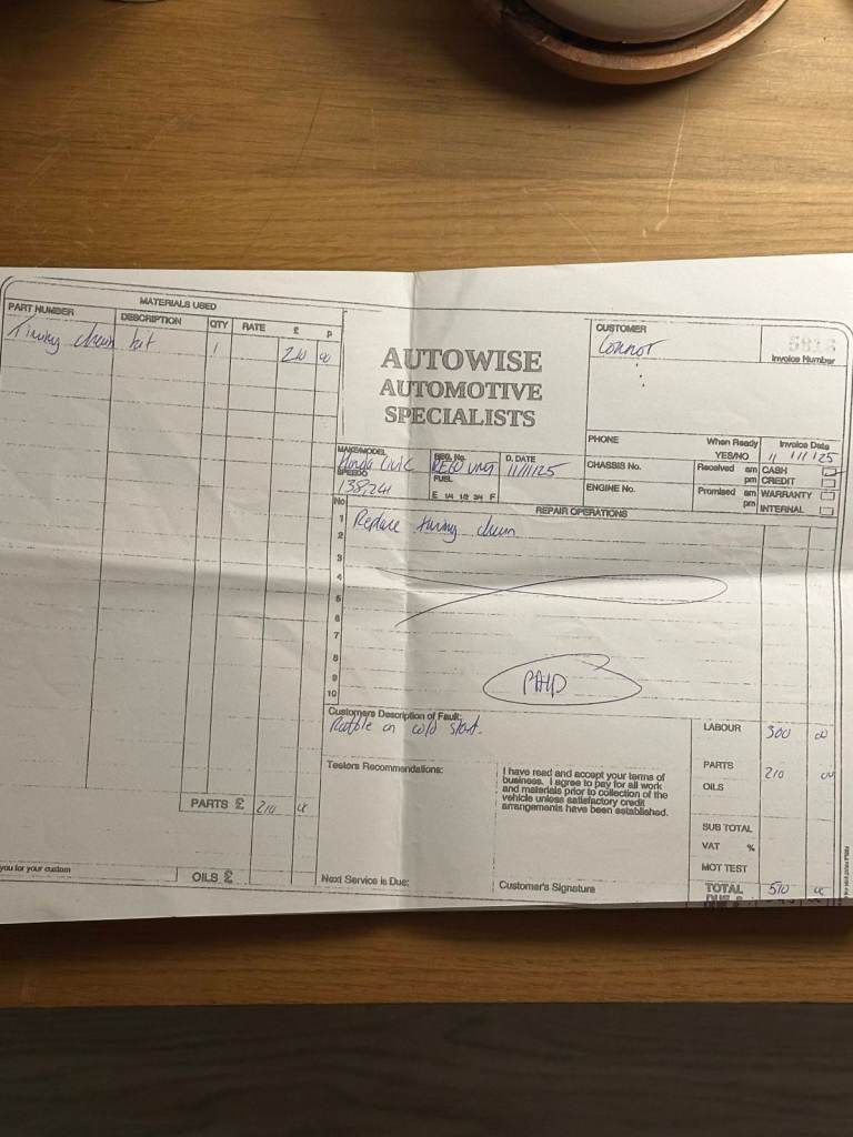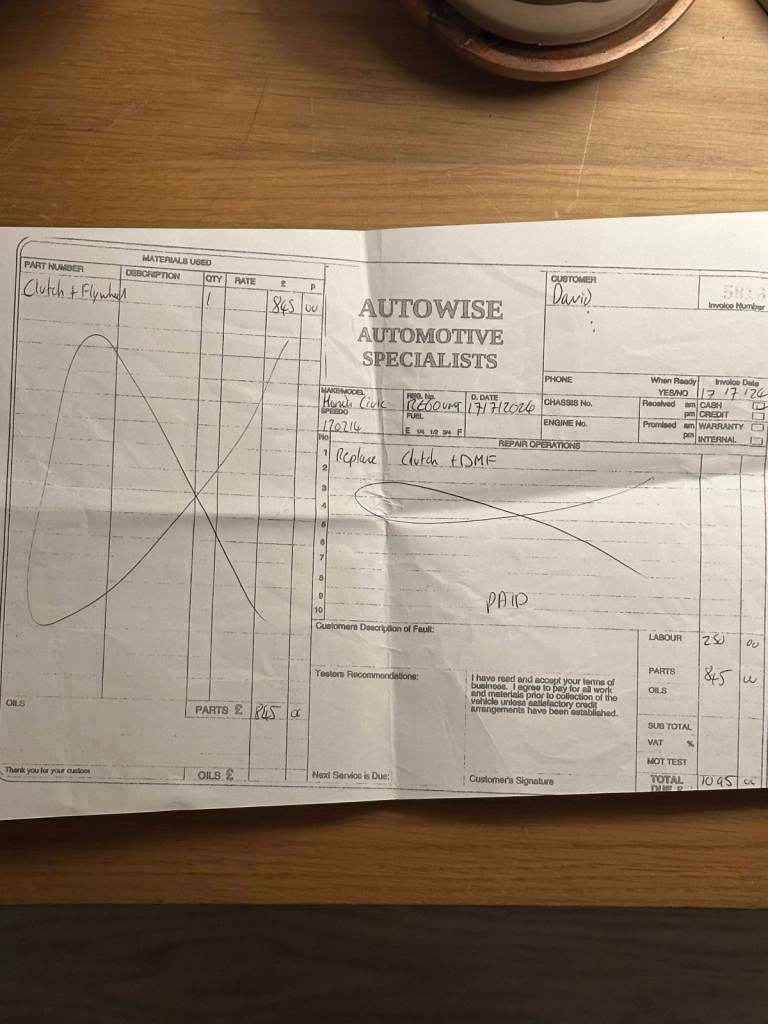 * Clutch + dual mass flywheel replaced (July 2024) – £1095