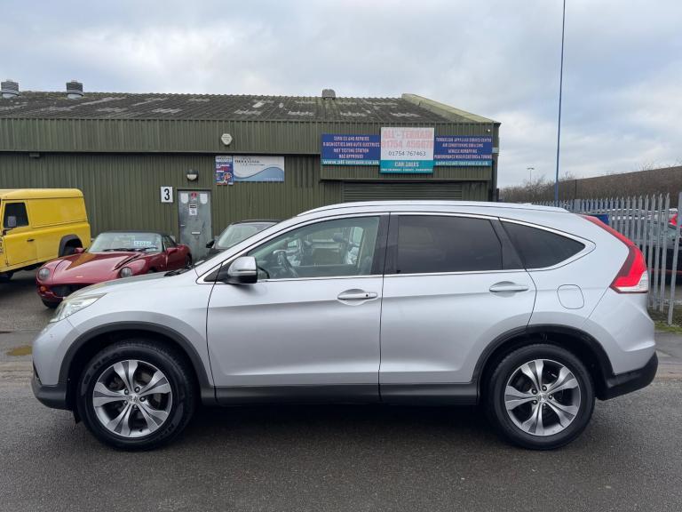 2013 (63) Honda CR-V 2.2 i-DTEC EX 5dr in Silver. 1 Former Keeper, 2 keys and Service History (8 Stamps) present. Runs and Drives very well, higher mileage but being the ultra reliable 2.2 i-DTEC Honda Diesel, this example has plenty more life to give to its new owner. Good condition throughout. Top spec EX which cost over £31,000 new. Spec includes Navigation, Reverse camera, Panoramic glass roof, Heated leather electric seats, Power folding tailgate, 18 inch alloy wheels, Economy mode, Bluetooth connectivity, DAB Radio and more. 12 Months MOT, Service and 6 Months Warranty with the sale. Permanent 4WD, practical for all seasons. Timing chain meaning no costly belt changes. Great value example.