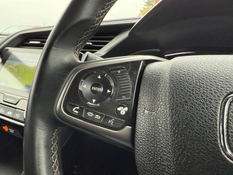 This 2018 Honda Civic VTEC Turbo SR is presented with a clear vehicle history check, offering you peace of mind. This Euro 6 compliant 1.0 litre petrol model benefits from a smooth automatic transmission and comes equipped with desirable features such as climate control auto air conditioning, dusk sensing headlights, and Bluetooth hands free telephone connectivity. For added convenience and safety, it includes front and rear parking sensors and adaptive cruise control. Experience impressive fuel economy with this Civic, achieving a highlight of 55 miles per gallon, which indicates it is more economical than many similar vehicles. Furthermore, the generous boot space provides ample room for your shopping, luggage, or equipment, making it a practical choice for everyday use and longer journeys..17in Alloy Wheels, 2x USB Jack and HDMI Jack, ABS - Anti Lock Braking System, Accessory Socket - Front, Accessory Socket - Rear, Adaptive Cruise Control, Airbag - Front Side, Airbag - Passenger SRS with Cut Off Switch, Alloy Pedals, Ambient Lighting, Auto Dimming Rear View Mirror, Black Grille, Bluetooth Hands Free Telephone - HFT, Brake Assist, Centre Console with Sliding Armrest and Storage Compartment, Chrome Window Garnish Surround, Climate Control Auto Air Conditioning, Collision Mitigation Braking System - CMBS, Courtesy Light - Front and Rear, Daytime Running Lights - LED, Deflate Warning System - DWS, Digital Audio Broadcast - DAB, Door Handles - Body Coloured, Door Mirrors - Body Coloured with Integrated Indicator, Door Mirrors - Electric-Retractable, Driver Information Interface with Colour Display, Driver Seat Manual Height Adjustment, Driver Seat Power Lumbar Adjustment, Driver i-SRS Airbag, EBD - Electronic Brakeforce Distribution, ECON Mode, Electric Power Steering with Variable Ratio, Electric Windows - DR-AS One Touch Up-Down, Electric Windows - Front and Rear, Electric Windows - Remote Key Fob, Electronic Parking Brake with Brake Hold, Emergency Stop Signal, Forward Collision Warning - FCW, Front Fog Lights - Halogen, Front Map Light, Front Seat Belts with 2 Stage Emergency Locking Retractor - ELR, Fuel Filler - Capless, Glove Box Light, Halogen Headlights, Headlights - Auto On-Off Timer - Coming-Leaving Home Function, Headlights - Dusk Sensor, High Beam Support System - HSS, High Mount Brake Light, Hill Start Assist - HSA, Honda CONNECT with GARMIN Navigation, ISOFIX Points - Outer Rear Seats, Immobiliser System, Intelligent Speed Limiter, Lane Departure Warning - LDW, Lane Keep Assist System, Leather Shift Knob, Multiplex Meter Blue Illumination, Parking Sensors - Front and Rear, Passenger Seat Back Pocket, Privacy Glass, Rain Sensing Windscreen Wipers, Rear One Touch Up-Down Power Windows, Rear Parking Camera, Rear Seat Armrest with Cupholder, Rear Seat Belts with Emergency Locking Retractor - ELR, Rear Wiper - Intermittent, Remote Central Locking with 2 Jack Knife Keys, Remote Retractable Door Mirrors, Road Departure Mitigation, Security Alarm System, Selectable Door Unlock, Shark Fin Antenna, Shift Indicator Light, Side Curtain Airbags, Speakers x8, Steering Wheel - Leather, Steering Wheel - Remote Audio Controls, Steering Wheel - Tilt and Telescopic Adjustment, Sunvisor Vanity Mirrors with Illumination, Super Locking, Tonneau Cover,
