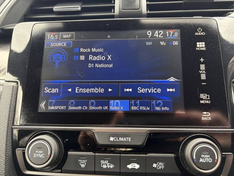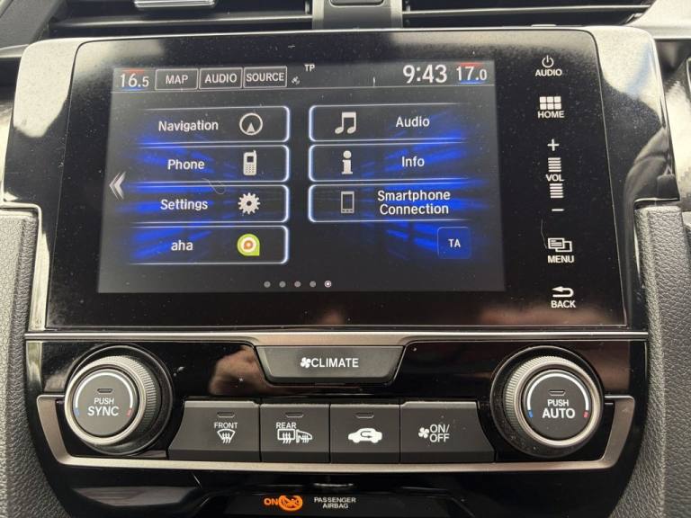 This 2018 Honda Civic VTEC Turbo Sport is a well maintained example, having had only two owners and boasting a clear vehicle history check. It features a responsive 1.5 litre petrol engine, meeting Euro 6 emissions standards. For your convenience and peace of mind, this Civic comes with a rear parking camera and parking assistance, adaptive cruise control, and Bluetooth hands free telephone connectivity. The headlights are LED and automatically activate thanks to a dusk sensor, ensuring optimal visibility in various conditions. Furthermore, the MOT is valid until April 2027, offering extended roadworthiness. Experience the engaging performance of this Honda Civic, with its impressive 0-60mph acceleration time of just 8.2 seconds. This VTEC Turbo Sport variant is designed to offer a dynamic driving experience, enhanced by its modern features. The combination of its efficient engine, advanced safety and convenience technologies, and strong provenance makes this particular Civic a compelling choice compared to other vehicles in its class..17in Alloy Wheels, 2x USB Jack and HDMI Jack, ABS - Anti Lock Braking System, Accessory Socket - Front, Accessory Socket - Rear, Adaptive Cruise Control, Airbag - Front Side, Airbag - Passenger SRS with Cut Off Switch, Alloy Pedals, Ambient Lighting, Black Grille, Bluetooth Hands Free Telephone - HFT, Brake Assist, Centre Console with Sliding Armrest and Storage Compartment, Centre Dual Exhaust with Finisher, Climate Control Dual Auto Air Conditioning, Collision Mitigation Braking System - CMBS, Courtesy Light - Front and Rear, Daytime Running Lights - LED, Deflate Warning System - DWS, Digital Audio Broadcast - DAB, Door Handles - Body Coloured, Door Mirrors - Body Coloured with Integrated Indicator, Door Mirrors - Electric-Retractable, Driver Information Interface with Colour Display, Driver Seat Manual Height Adjustment, Driver Seat Power Lumbar Adjustment, Driver i-SRS Airbag, EBD - Electronic Brakeforce Distribution, ECON Mode, Electric Power Steering with Variable Ratio, Electric Windows - DR-AS One Touch Up-Down, Electric Windows - Front and Rear, Electric Windows - Remote Key Fob, Electronic Parking Brake with Brake Hold, Emergency Stop Signal, Exterior Sport Garnish - Front-Rear-Side Sill, Forward Collision Warning - FCW, Front Fog Lights - LED, Front Map Light, Front Seat Belts with 2 Stage Emergency Locking Retractor - ELR, Fuel Filler - Capless, Glove Box Light, Headlights - Auto On-Off Timer - Coming-Leaving Home Function, Headlights - Dusk Sensor, Headlights - Washers, High Beam Support System - HSS, High Mount Brake Light, Hill Start Assist - HSA, Honda CONNECT with GARMIN Navigation, ISOFIX Points - Outer Rear Seats, Immobiliser System, Intelligent Speed Limiter, LED Headlights, Lane Departure Warning - LDW, Lane Keep Assist System, Leather Shift Knob, Multiplex Meter Red Illumination, Parking Sensors - Front and Rear, Passenger Seat Back Pocket, Piano Black Window Garnish Surround, Privacy Glass, Rain Sensing Windscreen Wipers, Rear One Touch Up-Down Power Windows, Rear Parking Camera, Rear Seat Armrest with Cupholder, Rear Seat Belts with Emergency Locking Retractor - ELR, Rear Wiper - Intermittent, Remote Central Locking with 2 Jack Knife Keys, Remote Retractable Door Mirrors, Road Departure Mitigation, Security Alarm System, Selectable Door Unlock, Shark Fin Antenna, Shift Indicator Light, Side Curtain Airbags, Speakers x8, Steering Wheel - Leather, Steering Wheel - Remote Audio Controls, Steering Wheel - Tilt and Telescopic Adjustment,