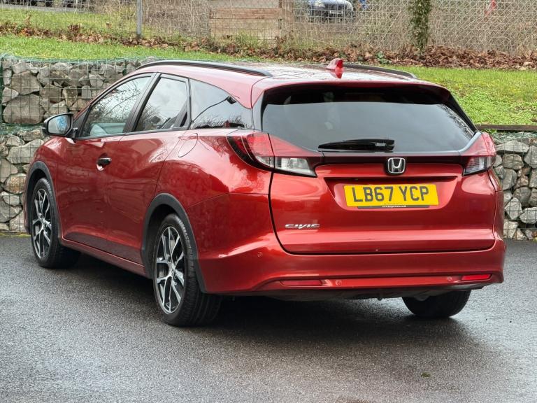 128,000 Miles. This stunning AUTOMATIC Honda Civic Tourer is proudly offered for sale at Keepers Cars of Stonehouse. Extremely practical, and yet still sporty and stylish. The car looks great, finished in beautiful Passion Red Metallic coachwork. Specification highlights of this Sport model include; 17"" Alloy wheels, Front fog lights, Remote central locking, Front and rear parking sensors, Rear camera, Remote central locking, Satellite navigation, Bluetooth telephone preparation, DAB/AM/FM Radio with USB connectivity, Climate controlled air conditioning, Cruise control, Electric windows, Electrically adjusted door mirrors, Trip and fuel computer, Auto headlamps, Rain sensitive wipers, Multifunctional steering wheel, Paddle shift change, Roof rails, Rear spoiler, Multiple airbags and Power assisted steering. The car comes with all original Honda literature, including owners guide and FULLY DOCUMENTED SERVICE HISTORY LOG with 11 entries, all contained within original Honda wallet. The car further benefits from 2 keys. The V5/c registration document and current MOT certificate with NO ADVISORIES are both present and correct. We are just 5 minutes from the M5 Junction 13, in Stonehouse Gloucestershire. Any inspection or demonstration welcomed and encouraged. Part exchange also welcomed. Viewing by appointment only please. For more photos and information visit Keepers Cars website. All our vehicles come complete with 3 months or 3,000 miles warranty, and 12 months complimentary AA breakdown cover for added peace of mind. Payment by bank transfer or a maximum of £5,000 physical bank notes per sale. Check out what our customers say about us, google Keepers Cars Reviews, we hope you will be as impressed about what our customers say, as we are proud. Keepers Cars of Stonehouse, awarded HIGHLY RATED by Autotrader; 2017 - 2025, 3 months warranty, Next MOT due 09/02/2027, Last serviced on 09/02/2026 at 127,893 miles, Full service history, Good bodywork, Black Cloth interior - Good Condition, Tyre condition Good, 5 seats, Metallic Passion Red, Upgrades - 17in Alloy Wheels - Radium, £7,000.