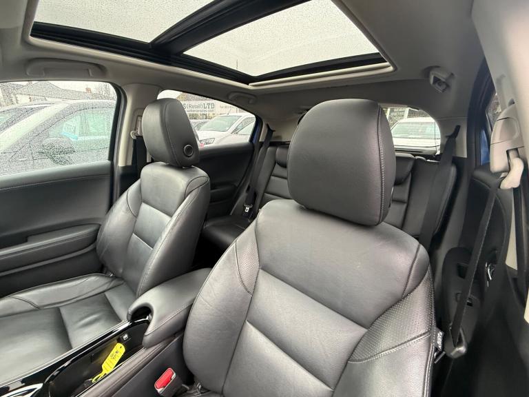 JUST ARRIVED. AUTOMATIC Honda HR-V. Full leather interior, Heated Seats, Panoramic Roof, Climate & Control, Satellite Navigation. All vehicles come with a H.P.I certificate, a full Major service before collection and a 12 Month MOT. 2,3,4,5 year finance options with zero deposit available. We specialize in helping people with poor credit scores who are looking to get back on track. All major debit cards accepted. Part exchange welcome. We have a panel of 30+ lenders and approve 9 out of 10 finance applications. Features Include: , 17in alloy wheels, door handles - premium satin finish, door mirrors - electric-heated-retractable, electric adjustable and heated door mirrors, electric windows - front and rear, electric windows - rear one touch up-down, electric windows - remote key fob, exterior mirror tilt for reverse, panoramic open glass roof, rear privacy glass, roof rails, tailgate spoiler body coloured, tyre repair kit, 2x usb jack and hdmi jack, accessory socket - centre console, accessory socket - front, accessory socket - luggage compartment, bluetooth hands free telephone - hft, digital audio broadcast - dab, honda connect with garmin navigation and cd player, shark fin antenna, speakers x6, abs - anti lock braking system, airbag - front side, airbag - passenger cut off switch, airbag - passenger srs, airbag - side curtains rear, alarm system, brake assist, city brake active system - ctba, dasp - driver assist safety pack, driver i-srs airbag, ebd - electronic brakeforce distribution, electronic parking brake, emergency stop signal, front seat belts with 2 stage emergency locking retractor - elr, hill start assist - hsa, isa - intelligent speed assist, isofix points, immobiliser system, rear seat belts with emergency locking retractor - elr, rear wiper with intermittent and reverse linked, side curtain airbags, smart keyless entry, super locking, traction control, ultrasonic sensor, vsa - vehicle stability assist, armrest - rear centre, auto dimming rear view mirror, boot light, centre pocket light, climate control - dual zone, courtesy light - front, door handles - interior chrome, driver seat manual height adjustment, drivers seat back pocket, electric windows - dr-as one touch up-down, front map light, front seats - heated, leather shift knob, paddle shift, passenger seat back pocket, passengers seat height adjustment, rain sensing windscreen wipers, remote retractable door mirrors, seats - magic flexibility system, smart start, steering wheel -