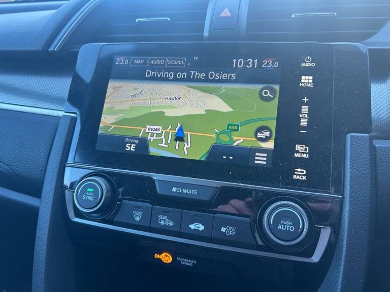 HONDA CIVIC 1.0 VTEC Turbo Sport Line Hatchback 5dr Petrol Manual Euro 6 (s/s) (126 ps), 17" Black alloy wheels Black grille, window surrounds and door mirror caps Bodykit with front spoiler and side skirts Black leather seats with red stitching Rear privacy glass Parking sensors front and rear Rear view camera Leather steering wheel and gear knob Dual zone climate control Honda Connect with 7" touchscreen and Garmin navigation Apple CarPlay and Android Auto Auto high beam Adaptive cruise control Traffic sign recognition Lane departure warning . Competitive finance is also available. If you would like to arrange a personalised video or test drive please contact us on 01636 614130. ALL TMG vehicles are supplied with a full, clear HPi check, 12 months MoT and Service (if required) 3 months/3000 miles electronic or mechanical breakdown, from Newark and Lincolnshires premier independent low mileage motor retailer. Part exchange welcome, nationwide delivery and competitive finance arranged. This vehicle is located at our Farndon Road Branch. View over 200 cars at: [Website URL removed], call Newark; 01636 614130 option 1 or email: [Email address removed. Click Email button to contact us.]..17in Alloy Wheels - Dynamic Exclusive Black, 2x USB Jack and HDMI Jack, ABS - Anti Lock Braking System, Accessory Socket - Front, Accessory Socket - Rear, Airbag - Front Side, Airbag - Passenger SRS with Cut Off Switch, Alloy Pedals, Ambient Lighting, Black Door Mirrors with Integrated Indicator, Black Grille, Black Line Pack, Bluetooth Hands Free Telephone - HFT, Brake Assist, Centre Console with Sliding Armrest and Storage Compartment, Climate Control Dual Auto Air Conditioning, Collision Mitigation Braking System - CMBS, Courtesy Light - Front and Rear, Daytime Running Lights - LED, Deflation Warning System - DWS - Indirect Tyre Pressure Monitoring System, Digital Audio Broadcast - DAB, Door Handles - Body Coloured, Door Mirrors - Electric-Retractable, Driver Information Interface with Colour Display, Driver Seat Manual Height Adjustment, Driver Seat Power Lumbar Adjustment, Driver i-SRS Airbag, Drivers Seat Back Pocket, EBD - Electronic Brakeforce Distribution, ECON Mode, Electric Power Steering with Variable Ratio, Electric Windows - DR-AS One Touch Up-Down, Electric Windows - Remote Key Fob, Electronic Parking Brake with Automatic Brake Hold, Emergency Stop Signal, Exterior Sport Garnish - Front-Side Sill, Forward Collision Warning - FCW, Front Fog Lights - Halogen, Front Map Light, Front Seat Belts with 2 Stage Emergency Locking Retractor - ELR, Fuel Filler - Capless, Glove Box Light, Halogen Headlights, Headlights - Auto On-Off Timer - Coming-Leaving Home Function, Headlights - Dusk Sensor, High Beam Support System - HSS, High Mount Brake Light, Hill Start Assist - HSA, Honda CONNECT with GARMIN Navigation, ISOFIX Points - Outer Rear Seats, Immobiliser System, Intelligent Adaptive Cruise Control, Intelligent Speed Limiter, Lane Departure Warning - LDW, Lane Keep Assist System, Leather Shift Knob, Multiplex Meter Blue Illumination, Parking Sensors - Front and Rear, Passenger Seat Back Pocket, Piano Black Window Garnish Surround, Power Windows - Front and Rear, RR One Touch Power Window Up-Down, Rain Sensing Windscreen Wipers, Rear Parking Camera, Rear Seat Armrest with Cupholder, Rear Seat Belts with Emergency Locking Retractor - ELR, Rear Wiper - Intermittent, Red Stitching on Steering Wheel, Remote Central Locking with 2 Jack Knife Keys, Remote Retractable Door Mirrors, Road Departure Mitigation, Seats - Passengers Power Lumbar Adjustment, Security Alarm System, Selectable Door Unlock, Shark Fin Antenna, Shift Indicator Light, Side Curtain Airbags