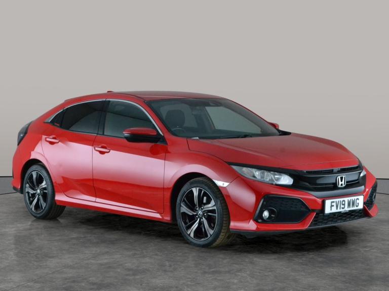 Experience the dynamic Honda Civic SR in striking red, fitted with sleek 17in alloy wheels and luxurious features. Enjoy seamless journeys with Adaptive Cruise Control, Sat Nav, and Apple CarPlay. Parking is effortless with front and rear sensors plus a reversing camera. Stay comfortable with dual zone digital climate control and added peace-of-mind from the Lane Departure Warning System and Traffic Sign Recognition. Paddle shift transmission adds a sporty touch to every drive. 3 services recorded, last serviced on 08/03/2026 at 74,429 miles. MOT to 12/04/2027. Visit our website for service history, online valuation, full vehicle specification plus multiple images. Any feature/option specified here is from 3rd party data. We cannot guarantee the accuracy of any specification supplied by a 3rd party. We recommend that you physically check the specification of the vehicle on site prior to purchase. This information does not form part of the buying contract. Terms & Conditions apply. We have over 2,000 cars available from our 10 national branches, check our website to see all our stock. Our Trustpilot rating is 4.4/5 with over 9,000 reviews.