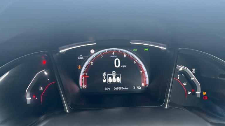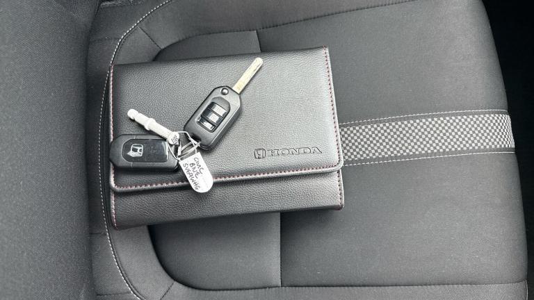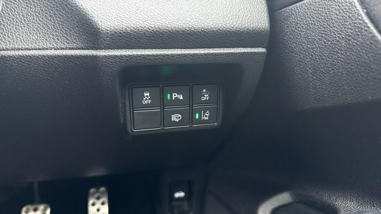 ..7'' touch screen, Adaptive cruise control, Apple car play/Android Auto, Bluetooth hands free telephone connection, Colour driver's information system display, Easy fuel capless refuelling system, Electric power steering, Emergency stop signalling system, Forward collision warning, Front and rear parking sensors, Lane departure warning system, Lane keep assist, Rear parking camera, Red instrument illumination, Speed limiter, Traffic sign recognition, Vehicle stability assist, 'Shark fin' mobile antenna, 2x USB and HDMI, 8 Speakers, Auxiliary socket for external MP3 player, Connect with Garmin sat nav, touch screen, internet radio/MP3/CD, Aha app, internet, Digital Audio Broadcast (DAB) Tuner, Steering wheel mounted audio controls, Automatic coming/leaving home lighting function, Automatic headlights with dusk sensor, Automatic rain sensing wipers, Automatic retractable door mirrors, Black grille, Black window surrounds, Body colour door handles, Body colour door mirrors, Body coloured bumpers, Dual exhaust pipes, Electric adjustable heated door mirrors, Electric front/rear windows/one touch operation, Headlight washers, High beam assist, LED daytime running lights, LED fog lights, LED Headlights, Power foldback door mirrors, Privacy glass, Rear wiper, Remote control door mirrors, Remote window closing, Alloy pedals, Ambient lighting, Boot light, Cargo hooks, Centre console storage and sliding armrest, Cloth upholstery, Driver's electric lumbar adjustment, Driver's seat height adjustment, Dual climate control air conditioning system, Front accessory power socket, Front map lights, Front/rear courtesy lights, Glovebox light, Isofix system on outer rear seats, Leather gear knob, Leather steering wheel, Passenger seat back pocket, Rear armrest with cupholder, Sunvisors with illuminated vanity mirrors, Three height adjustable rear head restraints, Tilt/telescopic adjustable steering wheel, Tonneau cover, 5 three point seatbelts, ABS+EBD+Brake assist, Anti-whiplash front headrests, Collision mitigation braking system, Deflation detection system, Dual front SRS airbags, Electronic parking brake with auto hold, Front and rear curtain airbags, Front seatbelt pretensioners, Front side airbags, Hill start assist, Passenger airbag deactivate switch, Tyre pressure warning, ECU immobiliser, Honda super locks, Remote central locking with 2 remote folding keys, Ultrasonic alarm, Tyre repair kit