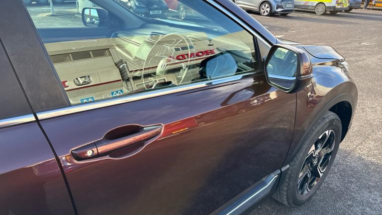 We are delighted to offer this well-maintained Honda CR-V Estate 1.5 VTEC Turbo SR, showing 74,679 miles and presented in excellent condition throughout. This SR model delivers an impressive blend of comfort, efficiency and performance, powered by Honda’s renowned 1.5 VTEC Turbo engine.Inside, you’ll find a spacious, premium cabin equipped with sought-after features including satellite navigation, reversing camera, front and rear parking sensors, heated seats, dual-zone climate control, and Honda Sensing safety technology. The vehicle has been clearly cared for by its previous owner, drives superbly, and benefits from Honda’s reputation for outstanding reliability.If you're looking for a practical, stylish and economical family SUV that’s ready to drive away, this CR-V SR is an excellent choice. Early viewing is highly recommended..Air Conditioning, Climate Control, Metallic Paint, Cruise Control, Satellite Navigation, Alloy Wheels, Leather Seats, Heated Seats, DAB Radio, Bluetooth, Parking Sensors, Full Service History, USB, Manufacturer Approved, Adaptive cruise, Keyless Entry-Push Button Start, Apple-Android Play, Rear Camera, Auto Lights, Electric Folding Mirrors, Lane Departure, Lane Keeping Assist, Pre Crash Prevention, Rain Sensors& 4x4, Rear privacy glass, ABS/EBD, Vehicle stability assist, Bluetooth hands free telephone connection, Agile handling assist, Honda CONNECT with GARMIN Navigation + 7"" touchscreen, DAB radio, Apple CarPlay, Android Auto, Aha app integration and internet browsing, Auto dimming rear view mirror, 8 speakers, Roof rails, LED daytime running lights, Rear air vents, Leather steering wheel, Rear reading lights, Driver airbag, Heated front seats, Remote keyless entry, Driver/passenger sunvisors with illuminated vanity mirrors, Temporary spare wheel