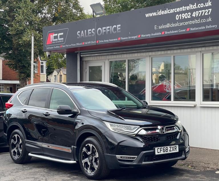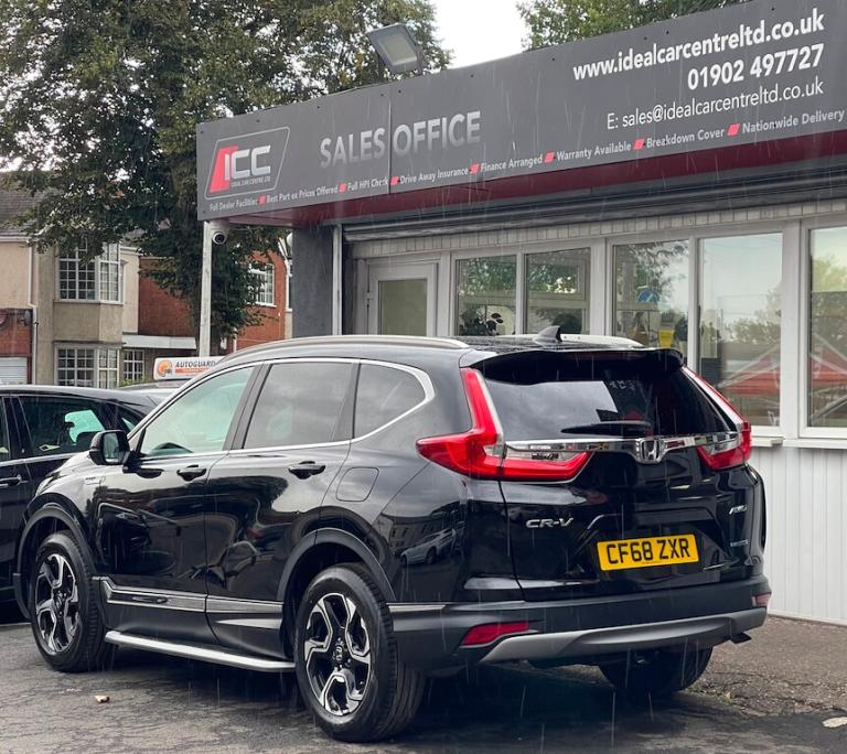 General Vehicle Information Year: 2019 Make: HONDA Model: CR-V Engine Size: 2.0L Transmission: AUTOMATIC Body Style: SUV Fuel: PETROL/ELECTIC HYBRID MPG: 38.7 BHP: 181 Registration: CF68ZXR Current Mileage: 45,000 Number of previous owners: 3 Number of keys:2 V5 Doc: Present MOT Expiration Date: New 12 month MOT Service History: Present Road Tax per year: £195.00 Euro Emission Standard: EURO 6 Don't let it get away! Hold this vehicle with a fully refundable £99 deposit reserve online or call and speak to our sales manager Vehicle Specification: Top 5 Features: 18” BLACK ALLOY WHEELS HONDA CONNECT with GARMIN Navigation FULL HONDA SENSING SAFETY SUITE (CMBS, LKAS, ACC, TSR, LDW, FCW) FRONT & REAR PARKING SENSORS + REAR VIEW CAMERA HEATED FRONT SEATS + DUAL-ZONE CLIMATE CONTROL Exterior Spec: LED HEADLIGHTS, LED FOG LIGHTS & LED DAYTIME RUNNING LIGHTS BODY COLOUR DOOR HANDLES & SPOILER ROOF RAILS & PRIVACY GLASS POWER-FOLD DOOR MIRRORS with REVERSE TILT FUNCTION RAIN-SENSING WIPERS & FRONT WINDSCREEN DE-ICER Interior Spec: HEATED FRONT SEATS + POWER LUMBAR SUPPORT (DRIVER & PASSENGER) 60/40 SPLIT-FOLDING REAR SEATS (ONE-MOTION FOLD) AMBIENT LIGHTING (FOOTWELL & DOOR HANDLES) LEATHER MULTIFUNCTION STEERING WHEEL with PADDLE SHIFT SMART ENTRY & START + AUTO-DIMMING REAR VIEW MIRROR REAR ARMREST with CUP HOLDERS, REAR VENTS & PRIVACY GLASS service history: Vehicle Purchase Price: £16,495.00 Full Dealer Facilities Buy with confidence All of our vehicles undergo a comprehensive multi-stage quality and safety assurance inspection, ensuring each vehicle meets our high preparation standards before they go on sale. Every aspect of your vehicle is inspected, including: Vehicle Exterior Bodywork, Vehicle Interior Condition, Brake Discs, Pads, Shoes & Drums, Oil Leaks, Gearbox Operation, Steering, Suspension, Engine Performance, Exhaust Condition, Wheel Balance/Tracking Tyre Depths & Pressures, Electrical Systems, Road Test, Many more. Will also come with a up to date service and new 12 month MOT if required. Buy a car online from the comfort of your home No matter where you are, we’ve made it really easy to buy a car online in 3 simple steps. 1:Choose your car Reserve online for £99 or speak to our contact center you can also request a personalized video. 2:Paperwork and payment made easy Complete your deal online, including part-exchange and any finance. 3:Choose your delivery option Contactless Click & Collect and home delivery available. FOR MORE INFO PLEASE CALL OUR SALES TEAM We are open 6 days a week Monday- Saturday 9:00am till 6:00pm. Appointments only Click and Collect Service Available Open to Inspection and Viewing HPI Checks Done on all Vehicles Nationwide Delivery Available England, Scotland and Wales Extended Warranty Available up to 6,12 or 24 Months Warranty policies to suit our individual needs. Talk to one of our highly trained sales Managers to decide what suits you best. Driveaway Cover Available Part Exchange Available Brake down cover Available For more information please call our office on [Phone number removed] or 01902497727 or visit our website / social media @idealcarcentreltd for more photos and info.. 18in Alloy Wheels - Black,2x USB Front,2x USB Rear - Charge Only,60-40 Split Fold Rear Seats with One Motion Fold Down,ABS - Anti Lock Braking System,AWD Emblem Rear,Accessory Socket - Centre Console,Accessory Socket - Front,Accessory Socket - Luggage Compartment,Active Cornering Lights - ACL,Agile Handling Assist,Airbag - Front Side,Airbag - Passenger SRS with Cut Off Switch,Airbag - Side Curtain - Front and Rear,Ambient Light - Driver-Passenger Footwell - Door Handle,Armrest - Rear Centre,Auto Dimming Rear View Mirror,BA - Brake Assist,Blind Spot Information including Cross Traffic Monitor,Body Colour Exterior Door Handles,Boot Light,Cargo Net Hook,Climate Control Dual Auto Air Conditioning,Collision Mitigation Braking System - CMBS,Courtesy Light - Front,Daytime Running Lights - LED,Deflate Warning System - DWS,Digital Audio Broadcast - DAB,Door Mirrors - Aspheric,Driver SRS Airbag - Single,Driver Seat Manual Height Adjustment,Driver Seat Power Lumbar Adjustment,Driver and Front Passenger Seat Armrest - Console Style,Drivers Seat Back Pocket,EBD - Electronic Brakeforce Distribution,ECON Mode,ECall,Electric Windows - DR-AS One Touch Up-Down,Electric Windows - Remote Key Fob,Electrically Retractable Door Mirrors,Electronic Parking Brake with Automatic Brake Hold,Emergency Stop Signal,Exterior Mirror Tilt for Reverse,Forward Collision Warning - FCW,Front Fog Lights - LED,Front Seat Belts with Emergency Locking Retractor - ELR,Front Seats - Heated,Front Windshield De-icer - Wipers Area,Glove Box Light,Headlights - Auto On-Off Timer - Coming-Leaving Home Function,Headlights - Dusk Sensor,High Beam Support System - HSS,Hill Start Assist - HSA,Honda CONNECT with GARMIN Navigation,Hybrid Emblem,ISOFIX Points,Immobiliser System,Instrument