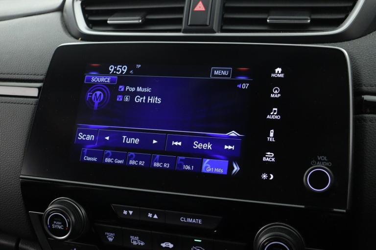 ..Adaptive cruise control, Agile handling assist, BLIS (Blind Spot Information System) with dual power heated blind spot mirrors, Bluetooth hands free telephone connection, Economy mode, Electric power steering, Emergency stop signalling system, Forward collision warning, Front and rear parking sensors, Honda CONNECT with GARMIN Navigation + 7'' touchscreen, DAB radio, Apple CarPlay, Android Auto, Aha app integration and internet browsing, Intelligent multi info display, Lane departure warning system, Lane keep assist system, Low speed following, Rear view camera, Road departure mitigation, Speed limiter, Traffic sign recognition, Vehicle stability assist, 2 USB sockets in rear, 2x USB sockets in front, 8 Speakers, DAB Digital radio, Steering wheel mounted controls, Subwoofer, Aspheric door mirrors, Auto dimming rear view mirror, Automatic headlights with dusk sensor, Body colour bumpers, Body colour door handles, Cornering light, Door mirrors tilt when reversing, Electric front windows/one touch facility, Electric rear windows + one touch facility, Electrically adjustable and heated door mirrors, Electrically retractable door mirrors, Front windscreen de-icer, High beam assist, LED daytime running lights, LED front fog lights, LED Headlights, LED rear lights, Rain sensor, Rear privacy glass, Rear wiper, Roof rails, Shark fin roof aerial, Welcome home function, 60/40 split folding rear seat, Accessory sockets, Ambient interior lighting, AWD emblem rear, Cargo hooks, Courtesy lights, Driver's electric adjustable lumbar support, Driver/passenger front seatback pockets, Driver/passenger sunvisors with illuminated vanity mirrors, Dual zone automatic climate control, Electric lumbar adjustment on passenger's seat, Footwell ambient lighting, Front centre armrest, Front map lights, Front passenger seat height adjust, Heated front seats, Height adjustable driver's seat, Hybrid emblem, Illuminated glovebox, Instrument panel with garnish wood film, Isofix child seat preparation, Leather steering wheel, Leather upholstery, Paddle shift controls, Rear air vents, Rear centre armrest, Rear headrests, Rear reading lights, Rear seat conversation mirror, Silver interior door handles, Sunglasses holder with mirror, Tilt/telescopic adjustable steering wheel, Tonneau cover, Trunk light, 5 x 3 point seatbelts, ABS/EBD, Anti-whiplash front headrests, Brake assist function, Collision mitigation braking system, Deflation detection system, Driver airbag, Electronic parking brake