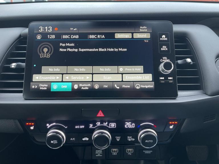 Red Honda Jazz 1.5 h i-MMD EX eCVT Euro 6 (s/s), 5 doors automatic petrol/hybrid hatchback, Genuine and warranted 86,988 miles, Only 1 Owner from brand new, MOT expires on 17.06.2026 with no advisories, Full Main Dealership Service History by Honda includes 6 stamps in the service book, Services were carried out at 12K, 25K, 36K, 49K, 61K and 74K, 3 months warranty, Finance available on low rates, Top specs automatic model by Honda, Equipped with SATNAV, DAB Radio, Touchscreen multimedia display, Bluetooth connectivity, USB ports, Features Front heated seats, Heated Steering Wheel, Electric folding side mirrors, 2xKeys, Effortless manoeuvring with front and rear parking sensors, Lane assist technology and a rear camera, This 2021 Honda Jazz h i-MMD EX is presented in excellent condition, having been owned by only one careful owner and boasting a full dealership service history. This Euro 6 compliant model features a responsive 1.5L petrol hybrid engine, offering an impressive fuel economy of 61 mpg. The EX trim level comes equipped with a suite of convenient notable features, including Smart Entry and Start for keyless access and ignition, Adaptive Cruise Control to maintain a set distance from the vehicle ahead, and Automatic Headlights that illuminate when needed. Inside, you'll appreciate the comfort of a Heated Steering Wheel and the advanced Honda CONNECT system, complete with HERE Navigation and seamless integration for both Android Auto and Apple CarPlay. The highlights of this Honda Jazz demonstrate its superior performance and efficiency compared to other vehicles in its class. Its low CO2 emissions contribute to a more environmentally friendly drive, while the brisk acceleration of 0-62mph in just 9.5 seconds ensures a capable and engaging driving experience. These combined attributes make this Jazz a practical, economical, and well equipped choice for any driver, We Deliver Cars Nationwide on Competitive Rates. Part Exchange Welcome, Our Address Is, Friends Autos Limited, Adjacent To Woodlands Power, Crab Apple Way, Vale Business Park, Evesham, WR11 1GP
