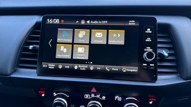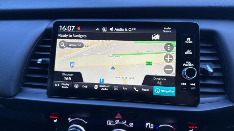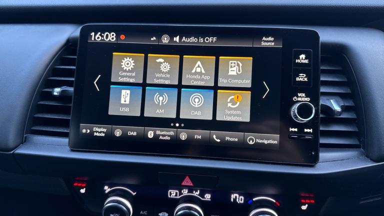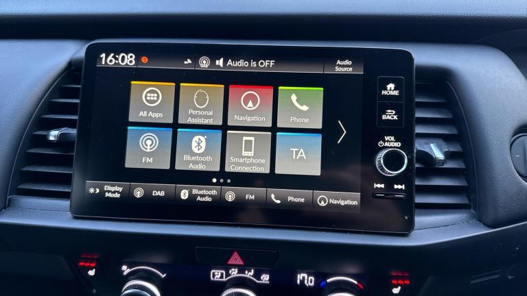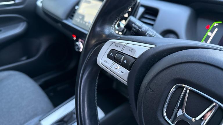..Adaptive cruise control, BLIS (Blind Spot Information System) with Cross Traffic Monitor, Bluetooth hands free telephone connection, Econ mode, Electric power steering wheel with variable gear ratio steering, Emergency stop signalling system, Forward collision warning, Front and rear parking sensors, Honda CONNECT with HERE Navigation + 9'' touchscreen, AM/FM/DAB/Apple Carplay and android auto, Idle stop, Intelligent speed limiter, Lane departure warning system, Lane keep assist system, Low speed following, Multi-information display, Rear view camera, Road departure mitigation, Traffic sign recognition, Vehicle stability assist, 'Shark fin' mobile antenna, 2 USB sockets in rear, 2x USB Front socket (1 data & 1 charge), 4 speakers, Remote audio controls on steering wheel, Aspheric door mirrors, Auto wipers, Automatic headlights with on/off timer, Coming/leaving home function, Body colour door handles, Body coloured bumpers, Chrome plating colour door mirror, eHEV emblem, Electric adjustable door mirrors, Electrically folding door mirrors, Front and rear electric windows, Heated door mirrors, High beam assist, LED daytime running lights, LED front fog lights, LED Headlights, LED rear lights, Privacy glass, Single exhaust tailpipe, 60/40 split rear bench seat, Climate control air conditioning, Driver and front passenger seat armrests, Driver and passenger front seat pockets, Driver's seat height adjustment, Fabric/leather upholstery, Front accessory power socket, Front head restraints, Front map lights, Front/rear courtesy lights, Heated front seats, Heated steering wheel, Isofix child seat restraint mechanism, Isofix points, Leather gearshift knob, Leather steering wheel, Magic seat flexibility system, Paddle shift controls, Plating interior door handles, Rear head restraints, Rear parcel shelf, Sunvisors with vanity mirrors, Tilt/telescopic adjustable steering wheel, Tonneau cover, Trunk light, 3x3 point rear seatbelts, Anti-lock braking system (ABS), Brake assist function, Brake hold function, Collision mitigation braking system, Deflation warning system, Driver knee airbag, Driver SRS airbag (single stage inflation), Driver/Front Passenger airbags, Electric parking brake, Front and rear side curtain airbag, Front side airbags, Hill start assist, Passenger SRS airbag cut-off device, Rear side airbags, Front seat belt with emergency locking retractor, Honda super locks, Immobiliser, Mirrors and windows key fob operation, Remote central locking with 2