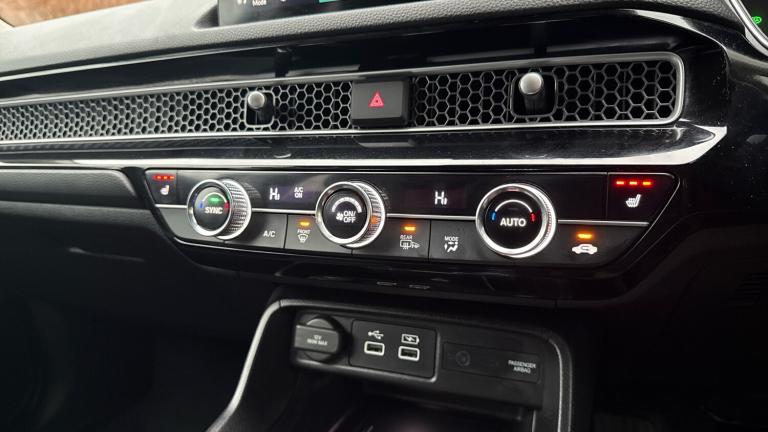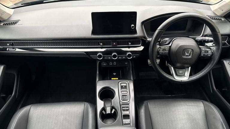 ..10.2'' Multi information display, Adaptive cruise control, Adaptive motion for electric power steering, Adjustable speed limiter, Agile handling assist, BLIS (Blind Spot Information System) with Cross Traffic Monitor, Bluetooth hands free telephone connection, Driving modes, Economy mode, Electric power steering wheel with variable gear ratio steering, Emergency call service, Emergency stop signalling system, Forward collision warning, Front and rear parking sensors, Honda CONNECT with Navigation 9'' touchscreen, AM/FM/DAB, Apple Carplay and Android Auto, live traffic info, Honda sensing, Idle stop, Intelligent speed limiter, Lane departure warning system, Lane keep assist, Low speed following, Power meter, Rear parking camera, Road departure mitigation, Smartphone wireless charging plate, Tailgate, Traffic jam assist, Traffic sign recognition, Wireless apple carplay, Vehicle stability assist, 'Shark fin' mobile antenna, 2x USB Front socket (1 data & 1 charge), Centre speaker, Digital Audio Broadcast (DAB) Tuner, Front tweeters, Premium BOSE audio system with 12 speakers, Steering wheel mounted audio controls, Subwoofer, Adaptive driving beam, Aspherical driver door mirrors, Auto dimming rear view mirror, Auto headlight adjuster, Auto headlights, Automatic coming/leaving home lighting function, Automatic rain sensing wipers, Body colour door handles, Body colour door mirrors, Chrome window garnish, Electric adjustable heated door mirrors, Electric front and rear windows, Electrically folding door mirrors, Headlight extension aluminium, High beam assist, High level LED brake light, LED daytime running lights, LED front fog lights, LED front turn type, LED Headlights, LED rear lights, Material finish grille, Panorama glass roof, Pop up hood, Privacy glass, Rear side wing doors, Rear wiper, Single hidden exhaust pipe, Variable front intermittent wipers, 3 seat bench in 2nd row, 4 way electric adjustable passenger seat, 60/40 split folding rear seat, 8 way electric adjustable drivers seat, Cargo accessory power socket, Cargo net hooks, Driver and front passenger seat armrests, Driver and front passenger seat electric lumbar adjustment, Driver's seat electric height adjustment, Driver/passenger front seatback pockets, Dual climate control air conditioning system, Front accessory power socket, Front map lights, Front/rear courtesy lights, Glovebox light, Heated front seats, Heated steering wheel, Hybrid emblem, Isofix points/i size, Leather steering wheel,