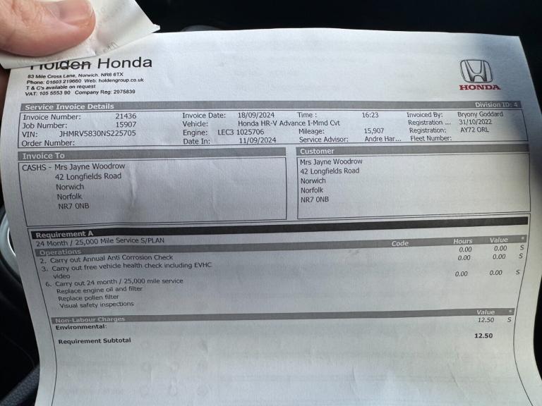 Posting for 1+ years2022 Honda HR-V 1.5 eHEV Advance 5dr CVT Hatchback Hybrid Automatic