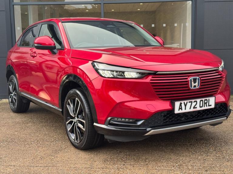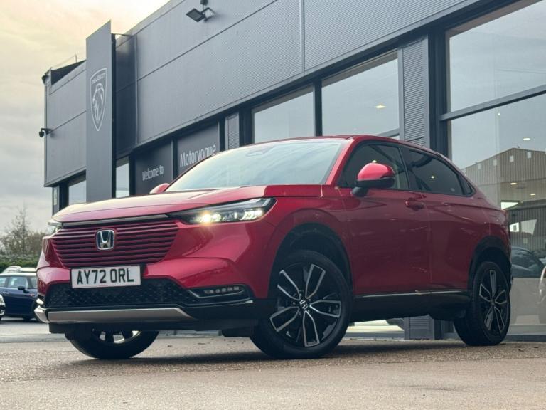Introducing this 2022 (72) Honda HR-V 1.5 eHEV Advance CVT, finished in a premium Radiant Red with just 18,827 miles on the clock. This top-spec Advance trim offers hybrid efficiency, luxury comfort, and Hondas renowned reliability all wrapped in a sleek, coupe-inspired SUV design.The eHEV hybrid system intelligently switches between electric, hybrid, and petrol power to deliver smooth acceleration, fantastic fuel economy, and refined, near-silent driving in town. Paired with the CVT automatic, every journey feels effortless.ULEZ compliant and extremely efficient, this HR-V is the perfect upgrade for economical family motoring or a premium daily commute now available for 20,595.Key FeaturesHonda eHEV Full Hybrid System self-chargingCVT Automatic for smooth and seamless drivingPremium Advance Trim with heated front seatsPanoramic rear-view camera + front & rear sensorsWireless Apple CarPlay & Android AutoAdaptive Cruise Control & Lane Keep AssistLED headlights with automatic high beamSmart entry & push-button startHonda SENSING full safety suite18-inch alloy wheelsMagic Seats for flexible boot spaceOwnership HighlightsOnly 18,827 miles2022 (72) with excellent condition throughoutULEZ compliant hybrid, perfect for city & long-distance useHigh-spec Advance trim full tech, top comfortExceptional Honda build quality & reliabilitySmart, stylish, efficient one of the best hybrids in its classExample Cost of Ownership (per year)(Based on typical UK usage and real-world data)CategoryEstimated /YearAssumptionsRoad Tax-170Hybrid, low COFuel-[Phone number removed] mpg real-world @ 1.45/l, 10k miles/yearServicing300450Annual Honda serviceMOT55From year 3 onwardsThe HR-V eHEV is known for exceptionally low running costs, especially compared to conventional petrol SUVs.Available now at Motorvogue Bury St Edmunds experience premium hybrid driving with standout efficiency and Honda reliability.Book a test drive today and discover why the HR-V Advance is one of the smartest SUV choices on the road..SAT NAV,APPLE CARPLAY.7'' TFT instrument cluster, Adaptive cruise control, Adjustable speed limiter, Agile handling assist, BLIS (Blind Spot Information System) with Cross Traffic Monitor, Bluetooth hands free telephone connection, Drive modes select (Eco, normal and sport), eCall emergency system, Electric power steering, Emergency stop signalling system, Forward collision warning, Front parking sensors, Handsfree power tailgate with walkaway close, Honda CONNECT with navigation, 9''
