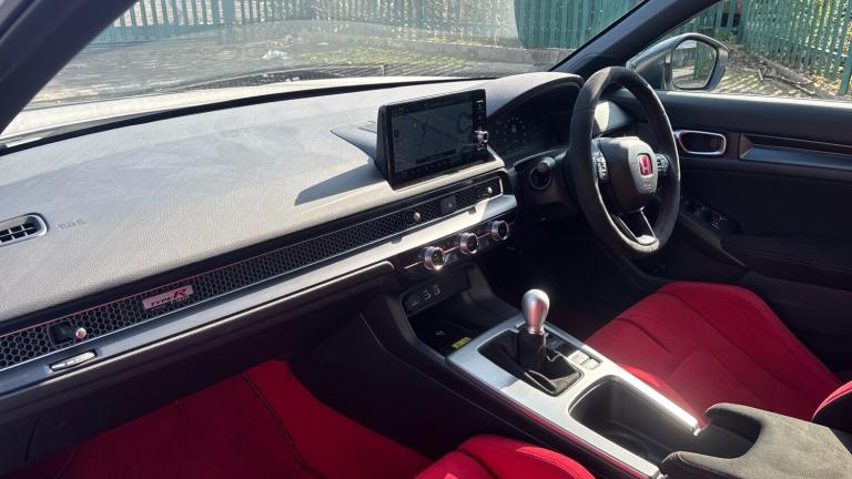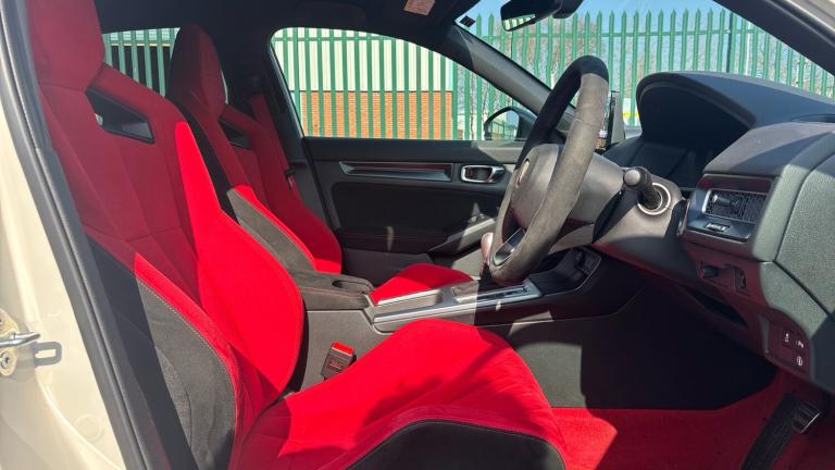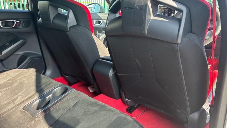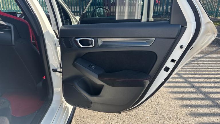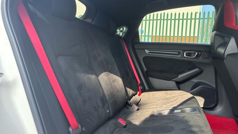 ..10.2'' Multi information display, Adaptive cruise control, Adaptive motion for electric power steering, Adjustable speed limiter, Agile handling assist, Bluetooth hands free telephone connection, Driving modes, Economy mode, Electric power steering wheel with variable gear ratio steering, Emergency call service, Emergency stop signalling system, Forward collision warning, Front and rear parking sensors, Honda CONNECT with Navigation 9'' touchscreen, AM/FM/DAB, Apple Carplay and Android Auto, live traffic info, Idle stop, Intelligent speed limiter, Lane departure warning system, Lane keep assist, Rear parking camera, Road departure mitigation, Smartphone wireless charging plate, Traffic sign recognition, Wireless apple carplay, Vehicle stability assist, 'Shark fin' mobile antenna, 2x USB Front socket (1 data & 1 charge), 8 Speakers, Front tweeters, Honda LogR built in to DA, Steering wheel mounted audio controls, Aluminium stay rear spoiler, Aspherical driver door mirrors, Auto dimming rear view mirror, Auto headlight adjuster, Auto headlights, Automatic coming/leaving home lighting function, Automatic rain sensing wipers, Berlina black grille, Black door mirrors, Body colour door handles, Chrome window garnish, Electric adjustable heated door mirrors, Electric front and rear windows, Electrically folding door mirrors, Headlight extension black, High beam assist, High level LED brake light, LED daytime running lights, LED front turn type, LED Headlights, LED rear lights, Pop up hood, Privacy glass, Rear side wing doors, Rear wiper, Triple exhaust tailpipe, Type R emblem, Variable front intermittent wipers, 2 seat bench in 2nd row, 60/40 split folding rear seat, Ambient door handle light in red, Cargo accessory power socket, Cargo net hooks, Driver and front passenger seat armrests, Driver's seat height adjustment, Dual climate control air conditioning system, Front accessory power socket, Front door illuminated strip in matte black with red LED, Front door matte switch panel with gloss side bar, Front door panel in suede material, Front head restraints, Front map lights, Front/rear courtesy lights, Gearshift panel trim in patterned aluminium style, Glovebox light, Isofix points/i size, Meter Illumination white, Platinum chrome interior door handles, Rear air vents, Rear door matte switch panel with gloss side bar, Rear door panel in suede material, Rear door upper trim in matte black, Rear head restraints, Rear reading lights, Single front passenger