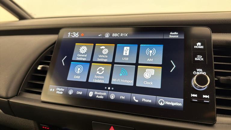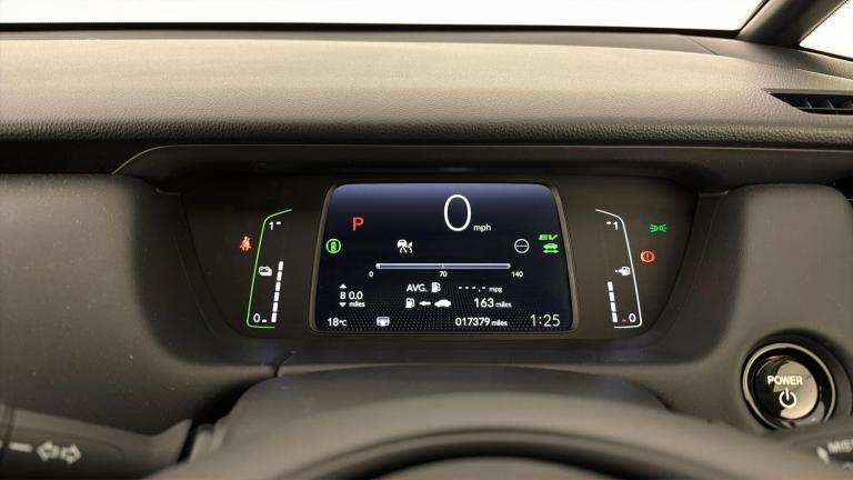 ..Half Fabric-Leather - Black, 16in Alloy Wheels - Centre Cap - Colour Change, 2x USB Front, 2x USB Rear - Charge Only, ABS - Anti Lock Braking System, Accessory Socket - Front, Adaptive Cruise Control, Adjustable Speed Limiter, Agile Handle Assist, Airbag - Driver SRS - Single Stage Inflation, Airbag - Drivers Knee, Airbag - Front Centre, Airbag - Front Driver and Passenger, Airbag - Front Side, Airbag - Passenger SRS with Cut Off Switch, Airbag - Rear Side, Airbag - Side Curtain - Front and Rear, Auto Headlight Adjuster - Manual, Auto Wipers, Automatic Headlights, BA - Brake Assist, Black Grille, Bluetooth Hands Free Telephone - HFT, Body Colour Exterior Door Handles, Cargo Net Hook, Climate Control Air Conditioning, Collision Mitigation Braking System - CMBS, Courtesy Light - Front, Daytime Running Lights - LED, Deflation Warning System - DWS, Digital Audio Broadcast - DAB+, Door Mirrors - Black, Door Mirrors - Electrically Adjustable and Folding - Heated - Aspheric, Driver Seat Manual Height Adjustment, Driver and Front Passenger Seat Armrest, Drivers Seat Back Pocket, ECON Mode, ECall - Europe, Electric Power Steering with Variable Gear Ratio, Electric Windows - Front and Rear, Electronic Parking Brake with Automatic Brake Hold, Emergency Stop Signal, Exclusive Styling, Exhaust - Single, Forward Collision Warning - FCW, Front Fog Lights - LED, Front Map Light, Front Seats - Heated, Front and Rear Seat Belts with Emergency Locking Retractor - ELR, Headlight Extension Colour - Black, Headlights - Auto On-Off Timer - Coming-Leaving Home Function, High Beam Support System - HSS, Hill Start Assist - HSA, Honda CONNECT with GARMIN Navigation, Hybrid Emblem, ISOFIX Fix Points - I-Size, Immobiliser System, Intelligent Speed Limiter, Key Fob Operation includes Mirrors and Windows, LED Headlights, LED Rear Lights, Lane Departure Warning - LDW, Lane Keep Assist System, Leather Shift Knob, Low Speed Following, MID - Multi Info Display, Magic Seats, Parking Sensors - Front x4 and Rear x4, Passenger Seat Back Pocket, Privacy Glass, Rear View Camera, Remote Central Locking with 2 Keys, Road Departure Mitigation, Roof Rails, Seats - 60:40 Split Folding 2nd Row, Security Alarm System, Shark Fin Antenna, Smart Entry and Start, Speakers x4, Steering Wheel - Heated, Steering Wheel - Leather, Steering Wheel - Remote Audio Controls, Steering Wheel - Tilt and Telescopic Adjustment, Sunvisor Vanity Mirrors, Sunvisor Vanity Mirrors Illumination, Super Locking, Tilt Sensor,