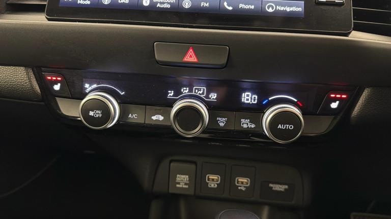 ..16in Alloy Wheels - Silver, 2x USB Front, 2x USB Rear - Charge Only, ABS - Anti Lock Braking System, Accessory Socket - Front, Adaptive Cruise Control, Adjustable Speed Limiter, Agile Handle Assist, Airbag - Driver SRS - Single Stage Inflation, Airbag - Drivers Knee, Airbag - Front Centre, Airbag - Front Driver and Passenger, Airbag - Front Side, Airbag - Passenger SRS with Cut Off Switch, Airbag - Rear Side, Airbag - Side Curtain - Front and Rear, Auto Wipers, Automatic Headlights, BA - Brake Assist, Blind Spot Information including Cross Traffic Monitor, Bluetooth Hands Free Telephone - HFT, Body Colour Exterior Door Handles, Cargo Net Hook, Climate Control Air Conditioning, Collision Mitigation Braking System - CMBS, Courtesy Light - Front, Daytime Running Lights - LED, Deflation Warning System - DWS, Door Mirrors - Chrome Plated, Door Mirrors - Electrically Adjustable and Folding - Heated - Aspheric, Driver Seat Manual Height Adjustment, Driver and Front Passenger Seat Armrest, Drivers Seat Back Pocket, ECON Mode, ECall - Europe, Electric Power Steering with Variable Gear Ratio, Electric Windows - Front and Rear, Electronic Parking Brake with Automatic Brake Hold, Emergency Stop Signal, Exhaust - Single, Forward Collision Warning - FCW, Front Fog Lights - LED, Front Map Light, Front Seat Belts with Emergency Locking Retractor - ELR, Front Seats - Heated, Headlights - Auto On-Off Timer - Coming-Leaving Home Function, High Beam Support System - HSS, Hill Start Assist - HSA, Honda CONNECT with GARMIN Navigation, Hybrid Emblem, ISOFIX Fix Points - I-Size, Immobiliser System, Intelligent Speed Limiter, Key Fob Operation includes Mirrors and Windows, LED Headlights, LED Rear Lights, Lane Departure Warning - LDW, Lane Keep Assist System, Leather Shift Knob, Low Speed Following, MID - Multi Info Display, Magic Seats, Parking Sensors - Front x4 and Rear x4, Passenger Seat Back Pocket, Privacy Glass, Rear View Camera, Remote Central Locking with 2 Keys, Road Departure Mitigation, Seats - 60:40 Split Folding 2nd Row, Security Alarm System, Shark Fin Antenna, Smart Entry and Start, Speakers x4, Steering Wheel - Heated, Steering Wheel - Leather, Steering Wheel - Remote Audio Controls, Steering Wheel - Tilt and Telescopic Adjustment, Sunvisor Vanity Mirrors, Super Locking, Tonneau Cover, Traffic Sign Recognition System, Trunk Light, Tyre Repair Kit, VSA - Vehicle Stability Assist, Whiplash Lessening Front Headrests, Wireless Apple Carplay