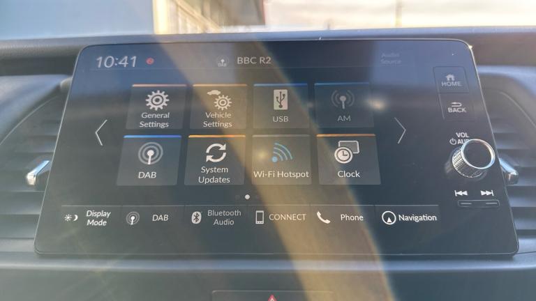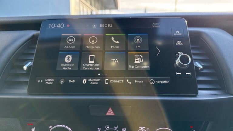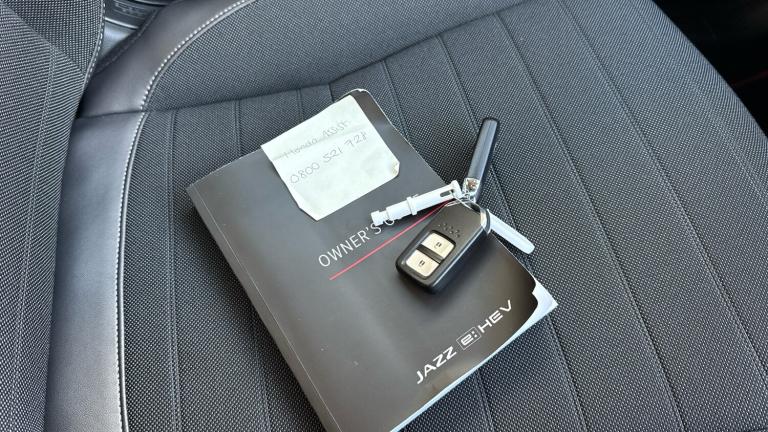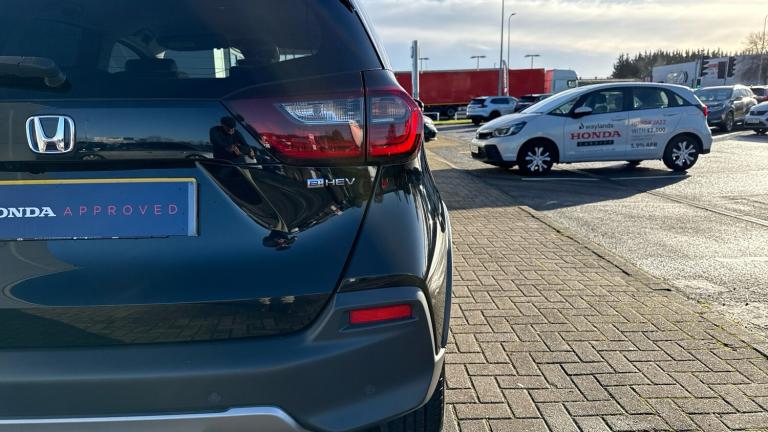..Adaptive cruise control, Adjustable speed limiter, Agile handling assist, Bluetooth hands free telephone connection, eCall emergency call system, Econ mode, Electric power steering wheel with variable gear ratio steering, Emergency stop signalling system, Forward collision warning, Front and rear parking sensors, Honda CONNECT with GARMIN Navigation + 9'' touchscreen, AM/FM/DAB/Apple Carplay and android auto, Idle stop, Intelligent speed limiter, Lane departure warning system, Lane keep assist system, Low speed following, Multi-information display, Rear view camera, Road departure mitigation, Tailgate, Traffic jam assist, Traffic sign recognition, Wireless apple carplay, Vehicle stability assist, 'Shark fin' mobile antenna, 180w Power audio system with 4 speakers, 2 USB-C connectors rear, 2x USB Front socket (1 data & 1 charge), Remote audio controls on steering wheel, Aspheric door mirrors, Auto wipers, Automatic headlights with on/off timer, Coming/leaving home function, Black door mirrors, Black headlight extension, Body colour door handles, Body coloured front grille, eHEV emblem, Electric adjustable door mirrors, Electrically folding door mirrors, Exclusive styling includes front and rear bumper, front fog garnish, silver fender, side sill garnish, Front and rear electric windows, Heated door mirrors, High beam assist, LED 3rd brake light, LED daytime running lights, LED front fog lights, LED Headlights, LED rear lights, Manual headlight levelling, Privacy glass, Rear side wing doors, Rear wiper, Roof rails, Single exhaust tailpipe, 3 seat bench in 2nd row, 60/40 split rear bench seat, Cargo net hooks, Climate control air conditioning, Driver and front passenger seat armrests, Driver and passenger front seat pockets, Driver's seat height adjustment, Fabric/Water repellent upholstery, Front accessory power socket, Front head restraints, Front map lights, Front/rear courtesy lights, Heated front seats, Heated steering wheel, Isofix points, Leather gearshift knob, Leather steering wheel, Magic seat flexibility system, Plating interior door handles, Rear head restraints, Single front passenger seat, Sunvisors with vanity mirrors, Tilt/telescopic adjustable steering wheel, Tonneau cover, Trunk light, Vanity mirror illumination, 3x3 point rear seatbelts, Anti-lock braking system (ABS), Brake assist function, Brake hold function, Child locks on rear doors, Collision mitigation braking system, Deflation warning system, Driver knee airbag, Driver SRS airbag