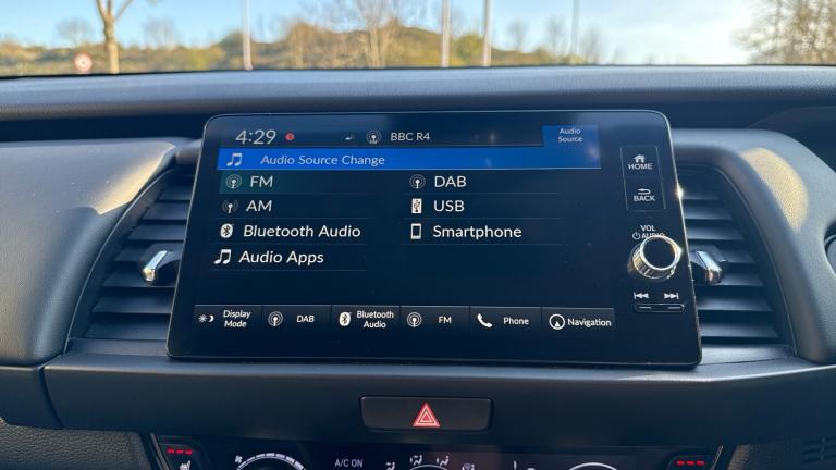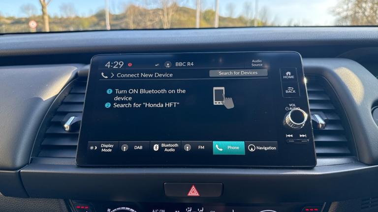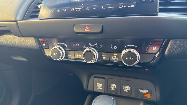 ..Adaptive cruise control, Adjustable speed limiter, Agile handling assist, BLIS (Blind Spot Information System) with Cross Traffic Monitor, Bluetooth hands free telephone connection, eCall emergency call system, Econ mode, Electric power steering wheel with variable gear ratio steering, Emergency stop signalling system, Forward collision warning, Front and rear parking sensors, Honda CONNECT with GARMIN Navigation + 9'' touchscreen, AM/FM/DAB/Apple Carplay and android auto, Idle stop, Intelligent speed limiter, Lane departure warning system, Lane keep assist system, Low speed following, Multi-information display, Rear view camera, Road departure mitigation, Traffic sign recognition, Vehicle stability assist, 'Shark fin' mobile antenna, 180w Power audio system with 6 speakers, 2 USB sockets in rear, 2x USB Front socket (1 data & 1 charge), Remote audio controls on steering wheel, Aspheric door mirrors, Auto wipers, Automatic headlights with on/off timer, Coming/leaving home function, Body colour door handles, Body coloured bumpers, eHEV emblem, Electric adjustable door mirrors, Electrically folding door mirrors, Front and rear electric windows, Heated door mirrors, High beam assist, LED daytime running lights, LED front fog lights, LED Headlights, LED rear lights, Privacy glass, Rear side wing doors, Rear wiper, Silver headlight extension, Single exhaust tailpipe, Third brake light, 3 seat bench in 2nd row, 60/40 split rear bench seat, Cargo net hooks, Climate control air conditioning, Driver and front passenger seat armrests, Driver and passenger front seat pockets, Driver's seat height adjustment, Fabric/leather upholstery, Front accessory power socket, Front head restraints, Front map lights, Front/rear courtesy lights, Heated front seats, Heated steering wheel, Isofix child seat restraint mechanism, Isofix points, Leather gearshift knob, Leather steering wheel, Magic seat flexibility system, Paddle shift controls, Plating interior door handles, Rear head restraints, Rear parcel shelf, Single front passenger seat, Sunvisors with vanity mirrors, Tilt/telescopic adjustable steering wheel, Tonneau cover, Trunk light, 3x3 point rear seatbelts, Anti-lock braking system (ABS), Brake assist function, Brake hold function, Child locks on rear doors, Collision mitigation braking system, Deflation warning system, Driver knee airbag, Driver SRS airbag (single stage inflation), Driver/Front Passenger airbags, Electric parking brake, Front and rear seat belt with