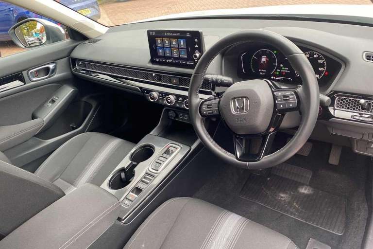 This 2024 Honda Civic h i-MMD Elegance is a Honda manufacturer approved vehicle, offering peace of mind with its proven quality. This particular model, the Elegance trim, is equipped with a responsive 2.0L Petrol Hybrid Engine and meets the Euro 6 emission standards. You'll appreciate the convenience of LED headlights for clear visibility and the seamless integration of Wireless Apple CarPlay, allowing you to connect your iPhone effortlessly. For comfortable journeys, Adaptive Cruise Control helps maintain a set speed and distance from the vehicle ahead.Experience impressive efficiency with this Civic, achieving a highlight fuel economy of 60 mpg, which indicates it performs better than many similar vehicles in its class. Its acceleration is also noteworthy, reaching 0-62mph in just 7.8 seconds, demonstrating a strong balance between performance and economy. Furthermore, this Honda Civic offers generous boot space, making it a practical choice for everyday use and longer trips alike.