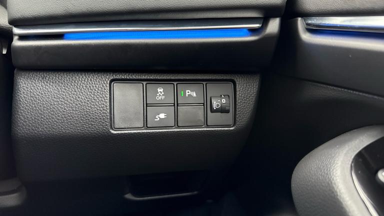 ..4 x front and 4 x rear parking sensors, Adaptive cruise control, Agile handling assist, Bluetooth hands free telephone connection, Drive mode (Econ, Sport, Normal), E-call, Econ mode, Electric power steering, Emergency stop signalling system, Forward collision warning, Honda CONNECT with Navigation 15'' touchscreen, AM/FM/DAB, Apple Carplay and Android Auto, Live traffic info, Intelligent speed limiter, Lane departure warning system, Lane keep assist system, Lead car departure notification system, Low speed following, Power meter, Rear view camera, Road departure mitigation, Traffic jam assist, Traffic sign recognition, Wireless charging, 11kW on board charger, Vehicle stability assist, 2 Tweeters, 2 x rear USB ports, 4 speakers, Front USB connections (Type-A and Type-C), Steering wheel audio remote control, 3rd brake light, Auto dimming rear view mirror, Auto headlights, Auto wipers, Body colour door handles, Electrically adjustable and heated door mirrors, Electrically folding door mirrors, Front and rear electric windows, Front fog lights, Front LED Indicator lights, Headlight auto on/off timer, High beam assist, High gloss black window garnish, LED daytime running lights, LED Headlights, Privacy glass, Rain sensor, Rear honda badging in white, Rear roof spoiler, Rear side wing doors, Rear wiper, Shark fin antenna, Smoke and clear lens rear light, White headlight extension, 3 seat bench in 2nd row, 60/40 split one touch flat folding rear seats, 8 way electrically adjustable drivers seat, Air conditioning - Rear vent, Ambient lighting on roof, Black interior panels, Cargo net hooks, Chrome interior door handles, Courtesy lights, Driver and front passenger seat armrests, Driver/passenger sunvisors with illuminated vanity mirrors, Dual zone automatic climate control, Front map lights, Heated front seats, I-Size ISO Fix Points, Leather steering wheel, Meter illumination, Normal pedals, Rear head restraints, Rear reading lights, Single front passenger seat, Synthetic leather upholstery, Tilt/telescopic adjustable steering wheel, Tonneau cover, Trunk light, Under trunk charging cable storage, 3 rear 3 point seatbelts, ABS/EBD, Brake assist function, Brake hold function, Child locks on rear doors, Collision mitigation braking system, Deflation warning system, Driver airbag, Driver SRS airbag (single stage inflation), Electronic parking brake with auto hold, Front and rear collision mitigation throttle control, Front and rear curtain airbags, Front passenger