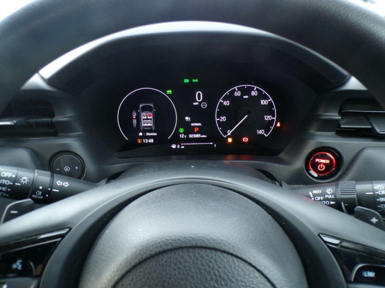 This 2024 Honda HR-V h i-MMD Elegance is a superb example, having had only one owner since new. This stylish compact SUV features a responsive 1.5 litre petrol hybrid engine, meeting the Euro 6 emission standards. The Elegance trim level ensures a well equipped driving experience, with notable features including automatic LED headlights that illuminate the road ahead without you needing to lift a finger. Parking is made simpler with a rear view camera and front and rear parking sensors, providing comprehensive assistance when manoeuvring.The Honda HR-V h i-MMD Elegance offers an impressive fuel economy of 52 miles per gallon, a highlight that demonstrates its efficiency compared to many other vehicles in its class. Furthermore, its low CO2 emissions contribute to a more environmentally conscious drive. Inside, you will find a single zone automatic climate control system, ensuring a comfortable cabin temperature for all occupants. This combination of advanced technology, excellent fuel economy, and low emissions makes this HR-V a compelling choice.