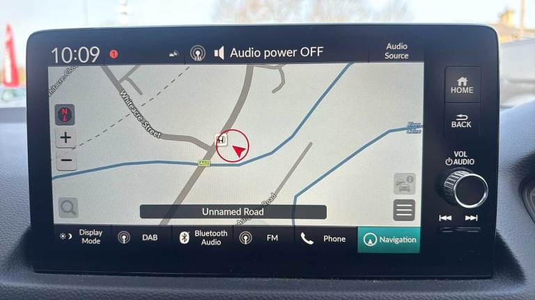 ..Honda CONNECT with Navigation 9'' touchscreen, AM/FM/DAB, Apple Carplay and Android Auto, live traffic info, Privacy glass, LED Headlights, Lane keep assist, Bluetooth hands free telephone connection, Wireless apple carplay, BLIS (Blind Spot Information System) with Cross Traffic Monitor, Exterior Features, Automatic rain sensing wipers, Electric front and rear windows, Privacy glass, Rear wiper, Variable front intermittent wipers, Vehicle stability assist, Body colour door handles, Chrome window garnish, Material finish grille, Pop up hood, Rear side wing doors, Single hidden exhaust pipe, Auto headlight adjuster, Auto headlights, Automatic coming/leaving home lighting function, Headlight extension black, High beam assist, High level LED brake light, LED daytime running lights, LED front turn type, LED Headlights, LED rear lights, Safety, ABS+EBD+Brake assist, Brake hold function, Collision mitigation braking system, Collision mitigation throttle control, Electronic parking brake with auto hold, Hill start assist, Low speed brake system, Regenerative braking/deceleration paddle control, Adaptive cruise control, Adaptive motion for electric power steering, Adjustable speed limiter, Agile handling assist, Driving modes, Electric power steering wheel with variable gear ratio steering, Emergency stop signalling system, Forward collision warning, Front and rear parking sensors, Honda sensing, Idle stop, Intelligent speed limiter, Lane departure warning system, Lane keep assist, Low speed following, Rear parking camera, Road departure mitigation, Traffic sign recognition, Aspherical driver door mirrors, Electric adjustable heated door mirrors, Electrically folding door mirrors, 3x3 point rear seatbelts, Airbags - driver and front passenger, Airbags - Knee (AS), Airbags - Knee (DR), Anti-whiplash front headrests, Deflation detection system, Driver SRS airbag (single stage inflation), Front and rear curtain airbags, Front and rear seat belts with emergency locking retractor (ELR), Front centre airbag, Front side airbags, Manual child lock in rear doors, Passenger airbag deactivate switch, Rear airbags, Audio / Communications, Bluetooth hands free telephone connection, Wireless apple carplay, 'Shark fin' mobile antenna, 2x USB Front socket (1 data & 1 charge), 8 Speakers, Digital Audio Broadcast (DAB) Tuner, Front tweeters, Steering wheel mounted audio controls, Driver Convenience, Power meter, Tailgate, Miscellaneous, 7'' Multi information display