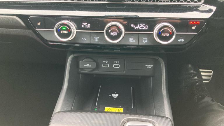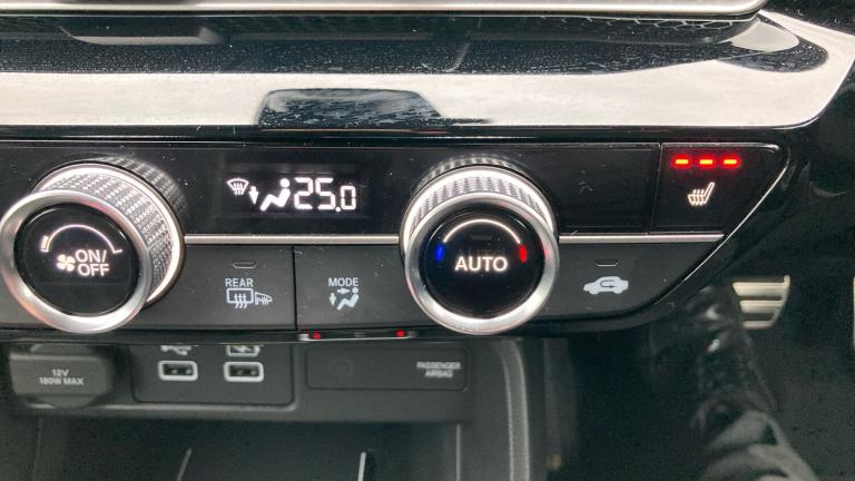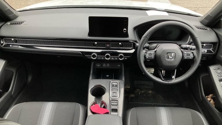 This 2025 Honda Civic Hatchback 2.0&8239,e:HEV Sport 5&8209,door with CVT, finished in a crisp metallic white, is the perfect fusion of sporty design and hybrid efficiency. The pure white exterior emphasises the Civic’s sharp, aerodynamic profile, accentuating its sleek lines, bold grille, and aggressive stance. Subtle black detailing on the wheels, side mirrors, and window trim enhances the Sport trim’s dynamic and athletic character.Under the bonnet, Honda’s 2.0&8209,litre hybrid e:HEV system combines a petrol engine with twin electric motors, delivering an energetic and refined driving experience. With seamless transitions between electric and petrol power, this hybrid setup delivers strong low-end torque, smooth acceleration, and excellent fuel economy. The CVT-style transmission ensures a smooth, responsive drive — from urban manoeuvres to long motorway journeys — all while keeping emissions in check.Inside, the Sport trim heightens the driving experience with its sporty touches and high-quality materials. The seats are upholstered in a combination of leather and synthetic materials, featuring contrast stitching for a vibrant, sporty feel. The flat-bottomed steering wheel adds a performance edge, while the paddle shifters let drivers simulate gear changes, adding engagement when desired.Technology is front and centre, with a large touchscreen infotainment system that supports Apple CarPlay and Android Auto for seamless smartphone integration. A digital driver display keeps all essential information clearly visible. Dual-zone climate control ensures passenger comfort in all conditions, while the rear seats fold easily to expand the practical boot space for luggage or everyday use.On the safety front, the car comes equipped with Honda’s suite of advanced driver&8209,assist systems, including adaptive cruise control, lane-keeping assist, collision mitigation, and rear parking sensors. The chassis offers a firm yet comfortable ride, with sharp, confidence&8209,inspiring steering and well-balanced handling.Overall, this metallic white 2025 Honda Civic Hatchback 2.0 e:HEV Sport b.Air Conditioning, Climate Control, Metallic Paint, Cruise Control, Satellite Navigation, Alloy Wheels, Heated Seats, DAB Radio, Bluetooth, Parking Sensors, Stop Start, USB, Manufacturer Approved, Diamond Cut Alloy Wheels, Adaptive cruise, Keyless Entry-Push Button Start, Apple-Android Play, Auto Lights, Electric Folding Mirrors, Lane Keeping Assist, Pre Crash Prevention& Rain Sensors, Electric front and rear windows, Rear wiper, Privacy glass, Automatic rain sensing wipers, Variable front intermittent wipers, Hill start assist, Electronic parking brake with auto hold, Collision mitigation braking system, Emergency stop signalling system, Brake hold function, Collision mitigation throttle control, Low speed brake system, Regenerative braking/deceleration paddle control, ABS+EBD+Brake assist, Vehicle stability assist, Bluetooth hands free telephone connection, Wireless apple carplay, Rear parking camera, Lane departure warning system, Lane keep assist