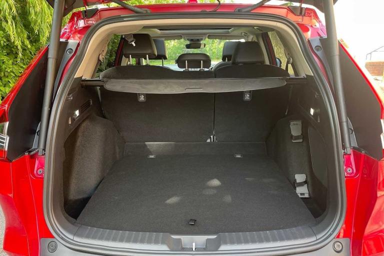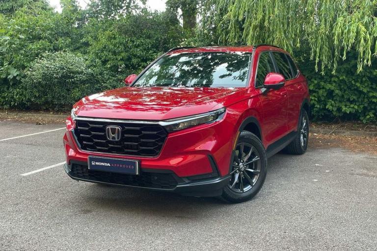 Available from 21/06/2025. Honda CR-V Estate 2.0 eHEV Advance 5dr eCVT in Red. Specification Includes Paint - Special,Premium plus paint - Crystal red,Trim - Leather,Leather - Black,Exterior Features,Auto wipers,Front and rear electric windows,Privacy glass,Rain sensor,Rear wiper,Amplitude reactive damper,Vehicle stability assist,Body colour bumpers,Body colour door handles,Body colour plus material colour roof spoiler,Body coloured shark fin antenna,Chrome + black paint grille,Exhaust pipe finisher,Low gloss black window garnish,Panoramic opening glass sunroof,Rear side wing doors,Roof rails,Active cornering lights,Adaptive driving beam,Auto headlight adjuster,Auto headlights,Front LED Indicator lights,Front turn type led with sequential,Headlight auto on/off timer,LED 3rd brake light,LED daytime running lights,LED front fog lights,LED Headlights,LED rear lights,Welcome home function,Safety,ABS/EBD,Brake assist function,Collision mitigation braking system,Electronic parking brake with auto hold,Front and rear collision mitigation throttle control,Hill descent control,Hill start assist,Low speed brake system,Paddle deceleration control,4 x front and 4 x rear parking sensors,Active lane change assist,Adaptive cruise control with Cornering speed assist,Adjustable speed limiter,Agile handling assist,Crossing traffic warning front,Drive mode (Econ- Normal- Snow- Sport),Driver attention monitoring system,Electric power steering,Emergency stop signalling system,Forward collision warning,HEV mode,Honda 360 sensing,Intelligent speed limiter,Lane change collision mitigation,Lane departure warning system,Lane keep assist system,Lane watch,Lead car departure notification system,Low speed following,Road departure mitigation,Traffic sign recognition,Auto dimming rear view mirror,Electrically adjustable and heated door mirrors,Electrically folding door mirrors,Exterior mirror tilt for reverse,Multi view camera system in door mirrors,5 x 3 point seatbelts,Anti-whiplash front headrests,Deflation detection system,Driver airbag,Driver SRS airbag (single stage inflation),Front and rear curtain airbags,Front and rear seat belts with emergency locking retractor (ELR),Front centre airbag,Front passenger airbag,Front side airbags,Knee airbags (DR) and (AS),Manual child lock in rear doors,Passenger SRS airbag with cut off switch,Rear side airbags,Audio / Communications,Bluetooth hands free telephone connection,E-call,eCall emergency call system,Wireless apple carplay,Wireless