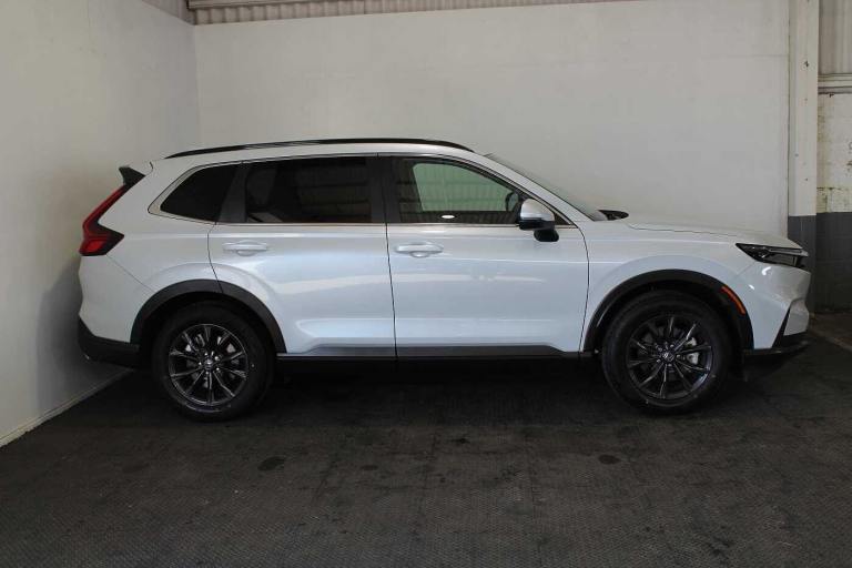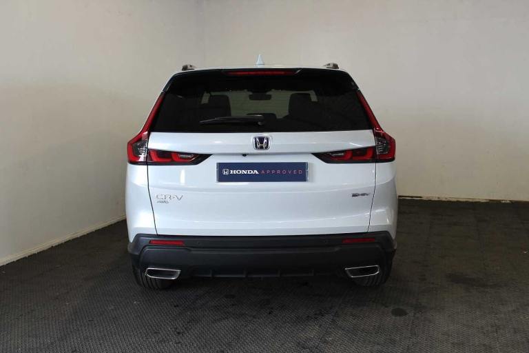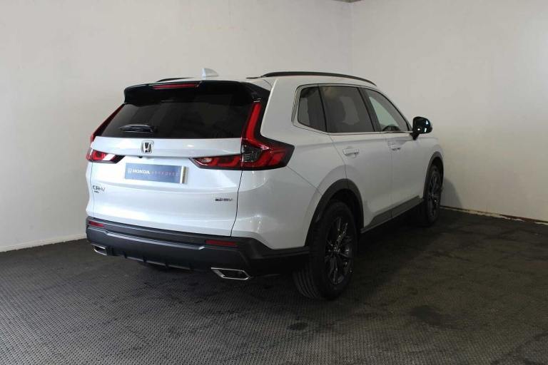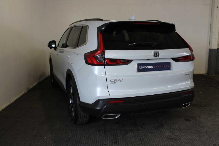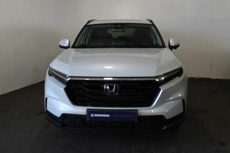 Available from 11/06/2025. Honda CR-V Estate 2.0 eHEV Elegance 5dr eCVT in White. Specification Includes Exterior Features,Premium plus paint,Paint - Special,Premium plus paint - Diamond dust pearl,Exterior Features,Auto wipers,Front and rear electric windows,Privacy glass,Rain sensor,Rear wiper,Amplitude reactive damper,Vehicle stability assist,Body colour bumpers,Body colour door handles,Body colour plus material colour roof spoiler,Body coloured shark fin antenna,Chrome + black paint grille,Exhaust pipe finisher,Low gloss black window garnish,Panoramic opening glass sunroof,Rear side wing doors,Roof rails,Auto headlights,Front LED Indicator lights,Front turn type led with sequential,Headlight auto on/off timer,High beam assist,LED 3rd brake light,LED daytime running lights,LED front fog lights,LED Headlights,LED rear lights,Welcome home function,Safety,ABS/EBD,Brake assist function,Collision mitigation braking system,Electronic parking brake with auto hold,Front and rear collision mitigation throttle control,Hill descent control,Hill start assist,Low speed brake system,Paddle deceleration control,4 x front and 4 x rear parking sensors,Active lane change assist,Adaptive cruise control with Cornering speed assist,Adjustable speed limiter,Agile handling assist,Crossing traffic warning front,Drive mode (Econ- Normal- Snow- Sport),Driver attention monitoring system,Electric power steering,Emergency stop signalling system,Forward collision warning,HEV mode,Honda 360 sensing,Intelligent speed limiter,Lane change collision mitigation,Lane departure warning system,Lane keep assist system,Lane watch,Lead car departure notification system,Low speed following,Rear view camera,Road departure mitigation,Traffic sign recognition,Auto dimming rear view mirror,Electrically adjustable and heated door mirrors,Electrically folding door mirrors,Exterior mirror tilt for reverse,5 x 3 point seatbelts,Anti-whiplash front headrests,Deflation detection system,Driver airbag,Driver SRS airbag (single stage inflation),Front and rear curtain airbags,Front and rear seat belts with emergency locking retractor (ELR),Front centre airbag,Front passenger airbag,Front side airbags,Knee airbags (DR) and (AS),Manual child lock in rear doors,Passenger SRS airbag with cut off switch,Rear side airbags,Audio / Communications,Bluetooth hands free telephone connection,E-call,eCall emergency call system,Wireless apple carplay,Wireless charging,1X USB (A/2.5A) and 1x Charger (C/3A) on Front,8