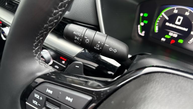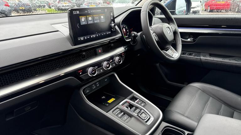 ..10.2'' Multi information display, 4 x front and 4 x rear parking sensors, Active lane change assist, Adaptive cruise control with Cornering speed assist, Adjustable speed limiter, Agile handling assist, BLIS (Blind Spot Information System) with Cross Traffic Monitor, Bluetooth hands free telephone connection, Crossing traffic warning front, Drive mode (Econ, Normal, Snow, Sport), Driver attention monitoring system, E-call, eCall emergency call system, Electric power steering, Emergency stop signalling system, Forward collision warning, Handfree power tailgate with kick sensor and walk away close, HEV mode, Honda 360 sensing, Honda CONNECT with Navigation 9'' touchscreen, AM/FM/DAB, Apple Carplay and Android Auto, live traffic info, Intelligent speed limiter, Lane change collision mitigation, Lane departure warning system, Lane keep assist system, Lane watch, Lead car departure notification system, Low speed following, Power meter, Rear view camera, Road departure mitigation, Traffic jam assist, Traffic sign recognition, Wireless apple carplay, Wireless charging, Amplitude reactive damper, Vehicle stability assist, 1X USB (A/2.5A) and 1x Charger (C/3A) on Front, 8 Speakers, DAB+ radio, Dashboard centre speaker, Front tweeters, Premium audio speakers, Rear USB 2x Charger (C/3A), Steering wheel mounted controls, Auto dimming rear view mirror, Auto headlights, Auto wipers, Body colour bumpers, Body colour door handles, Body colour plus material colour roof spoiler, Body coloured shark fin antenna, Chrome + black paint grille, Electrically adjustable and heated door mirrors, Electrically folding door mirrors, Exhaust pipe finisher, Exterior mirror tilt for reverse, Front and rear electric windows, Front LED Indicator lights, Front turn type led with sequential, Headlight auto on/off timer, High beam assist, LED 3rd brake light, LED daytime running lights, LED front fog lights, LED Headlights, LED rear lights, Low gloss black window garnish, Panoramic opening glass sunroof, Privacy glass, Rain sensor, Rear side wing doors, Rear wiper, Roof rails, Trailer stability assist, Welcome home function, 3 seat bench in 2nd row, 4 way driver lumbar support, 4 way electrically adjustable passenger seat without height adjust, 60/40 split folding rear seat, 8 way electrically adjustable drivers seat, Accessory sockets in Front & Trunk, Air conditioning - Rear vent, Ambient light in roof, Cargo net hooks, Courtesy lights, Driver and front passenger seat armrests,