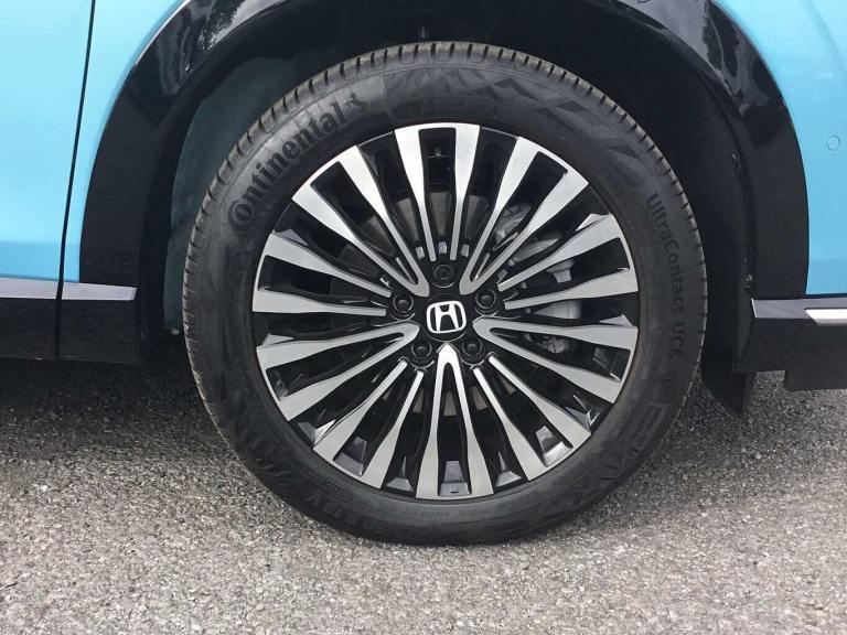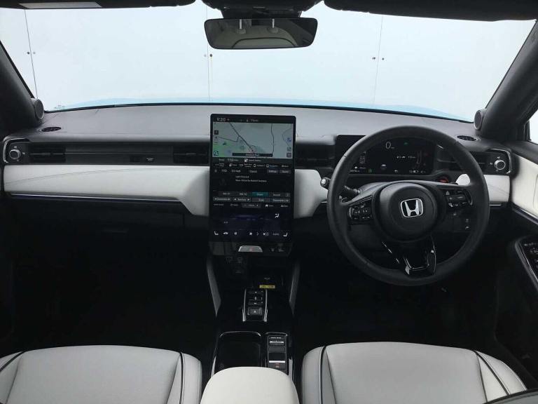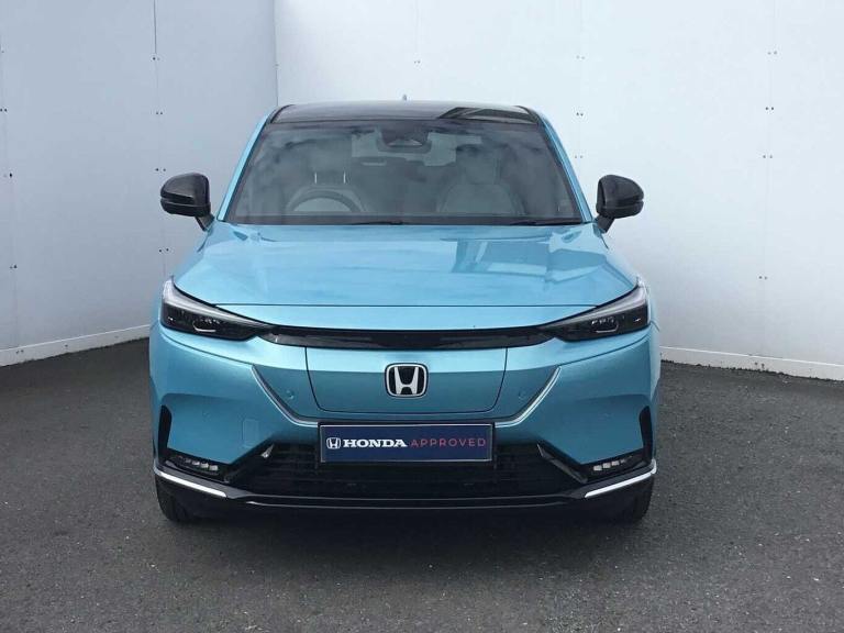 Available from 26/10/2025. Honda E NY1 Hatchback 150kW Advance 69kWh 5dr Auto in Aqua Topaz. Specification Includes Exterior Features,Premium paint,Wheels,18in Black cut alloy wheels,Paint - Special,Premium - Aqua topaz,Trim - Leather,Synthetic leather - Light grey with active blue stitching accent,Exterior Features,Auto wipers,Front and rear electric windows,Privacy glass,Rain sensor,Rear wiper,Vehicle stability assist,Body colour door handles,High gloss black window garnish,Panoramic glass sunroof,Rear honda badging in white,Rear roof spoiler,Rear side wing doors,Shark fin antenna,3rd brake light,Auto headlights,Front fog lights,Front LED Indicator lights,Headlight auto on/off timer,High beam assist,LED daytime running lights,LED Headlights,Smoke and clear lens rear light,White headlight extension,Safety,ABS/EBD,Brake assist function,Brake hold function,Collision mitigation braking system,Electronic parking brake with auto hold,Front and rear collision mitigation throttle control,Hill start assist,Regenerative braking/deceleration paddle control,4 x front 4 x rear 4 x side parking sensors,Adaptive cruise control,Agile handling assist,Electric power steering,Emergency stop signalling system,Forward collision warning,Honda parking pilot,Intelligent speed limiter,Lane departure warning system,Lane keep assist system,Lead car departure notification system,Low speed following,Multi view camera,Road departure mitigation,Traffic sign recognition,Auto dimming rear view mirror,Electrically adjustable and heated door mirrors,Electrically folding door mirrors,3 rear 3 point seatbelts,Child locks on rear doors,Deflation warning system,Driver airbag,Driver SRS airbag (single stage inflation),Front and rear curtain airbags,Front passenger airbag,Front side airbags,Passenger SRS airbag with cut off switch,Whiplash lessening front headrests,Audio / Communications,Bluetooth hands free telephone connection,E-call,Wireless charging,2 Tweeters,2 x rear USB ports,4 speakers,Front USB connections (Type-A and Type-C),Pioneer premium audio,Steering wheel audio remote control,Driver Convenience,Handfree power tailgate with kick sensor and walk away close,Power meter,Miscellaneous,Drive mode (Econ- Sport- Normal),Econ mode,Honda CONNECT with Navigation 15in touchscreen- AM/FM/DAB- Apple Carplay and Android Auto- Live traffic info,Traffic jam assist,Trim,Exclusive styling silver trim with blue lighting in door and dash,3 seat bench in 2nd row,60/40 split one touch flat folding