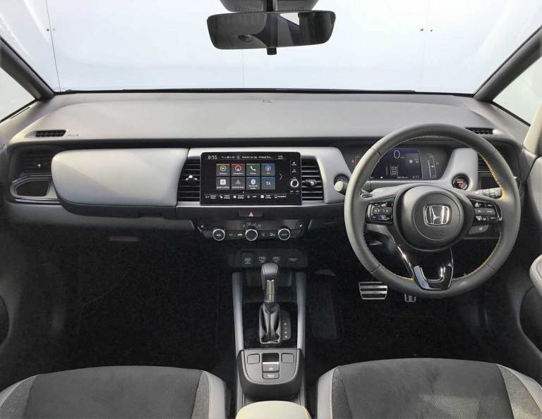 Available from 13/11/2025. Honda Jazz Hatchback 1.5 i-MMD Hybrid Advance Sport 5dr eCVT in Urban Grey. Specification Includes Exterior Features,Premium paint,Tailgate spoiler,Safety,Black door mirrors,Wheels,16in Unique alloy wheels,Paint - Special,Premium paint - Urban grey,Trim - Part Leather,Cloth / Suede / Leather - Grey,Exterior Features,Auto wipers,Front and rear electric windows,Privacy glass,Rear wiper,Vehicle stability assist,Body colour door handles,eHEV emblem,Exclusive styling includes front and rear bumper in gloss black finish,Rear side wing doors,Single exhaust tailpipe with finisher,Sport grille,Automatic headlights with on/off timer- Coming/leaving home function,Black headlight extension,High beam assist,LED 3rd brake light,LED daytime running lights,LED Headlights,LED rear lights,Manual headlight levelling,Safety,Anti-lock braking system (ABS),Brake assist function,Brake hold function,Collision mitigation braking system,Electronic parking brake with auto hold,Hill start assist,Paddle deceleration control,Regenerative braking system,Adaptive cruise control,Adjustable speed limiter,Agile handling assist,Driver attention monitoring system,Electric power steering wheel with variable gear ratio steering,Emergency stop signalling system,Forward collision warning,Front and rear parking sensors,Idle stop,Intelligent speed limiter,Lane departure warning system,Lane keep assist system,Low speed following,Rear view camera,Road departure mitigation,Traffic sign recognition,Aspheric door mirrors,Electric adjustable door mirrors,Electrically folding door mirrors,Heated door mirrors,3x3 point rear seatbelts,Child locks on rear doors,Deflation warning system,Driver knee airbag,Driver SRS airbag (single stage inflation),Driver/Front Passenger airbags,Front and rear seat belt with emergency locking retractor,Front and rear side curtain airbag,Front centre airbag,Front side airbags,Passenger SRS airbag cut-off device,Rear side airbags,Whiplash lessening front headrests,Audio / Communications,Bluetooth hands free telephone connection,eCall emergency call system - ecall functionality is subject to 2G/3G network availability,Wireless apple carplay,'Shark fin' mobile antenna,180w Power audio system with 4 speakers,2 USB-C connectors rear,2x USB Front socket (1 data & 1 charge),Remote audio controls on steering wheel,Driver Convenience,Tailgate,Miscellaneous,BLIS (Blind Spot Information System) with Cross Traffic Monitor,Drive mode (Econ- Sport- Normal),Honda